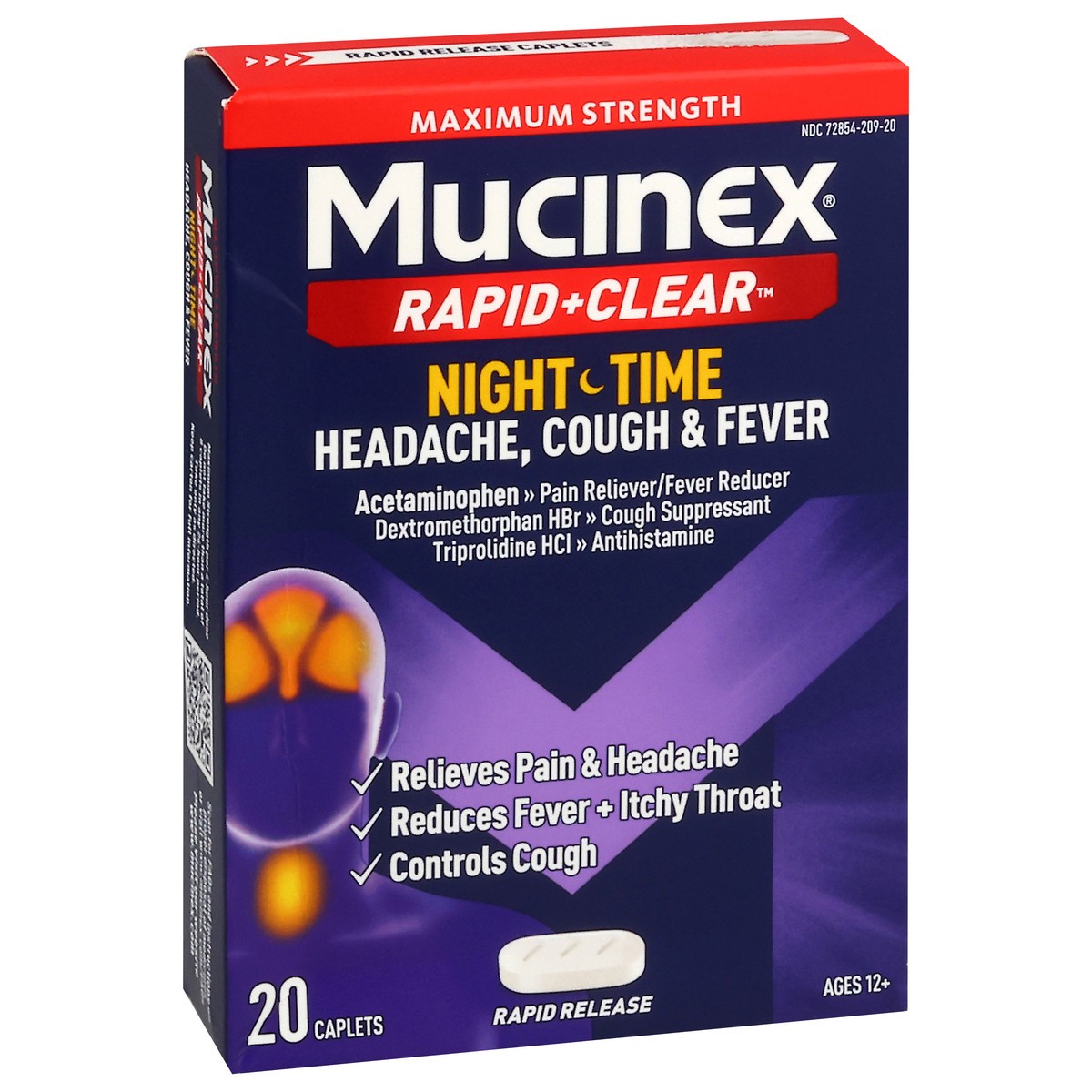 Mucinex Rapid Clear Maximum Strength Night Time Headache, Cough & Fever - 20 ct