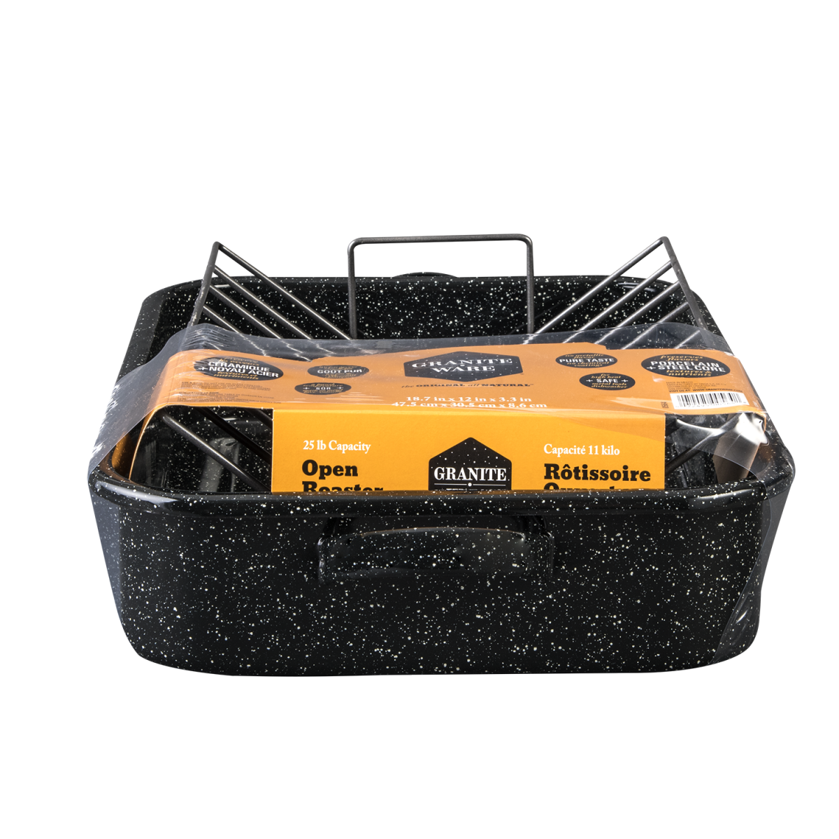Granite Ware Open Rectangular Roaster with V-Rack