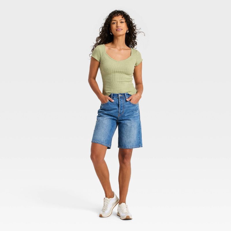 Women's Slim Fit Short Sleeve Pointelle Sweetheart Neck T-Shirt - Universal Thread™ Green M