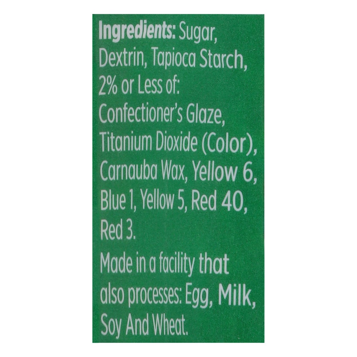 Sugar, Dextrin, Tapioca Starch, 2% or Less of: Confectioner's Glaze, Titanium Dioxide (Color), Carnauba Wax, Yellow 6, Blue 1, Yellow 5, Red 40, Red 3.
