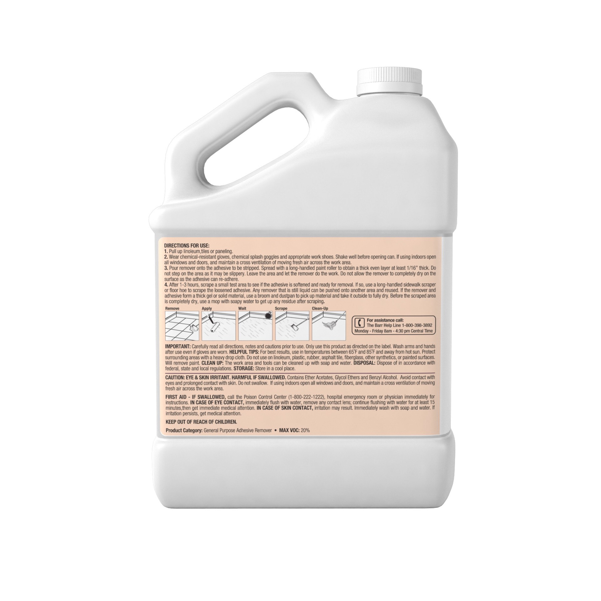 Removes adhesives. Removes mastics and contact cement. Gel brushable formula. Clings to surfaces. Low odor. Non-methylene chloride formula. Read entire label prior to use or storage.