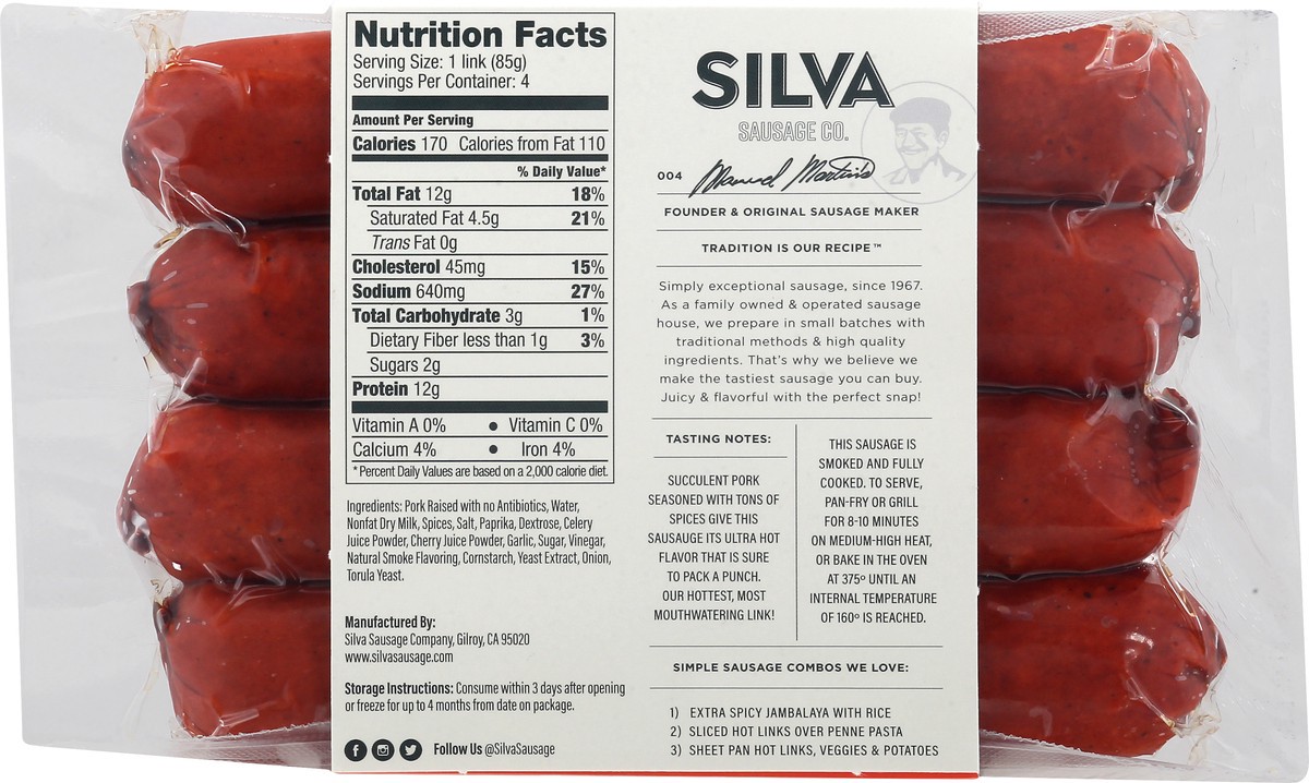 Silva All Natural Abf Hot Link Sausage - 12 Oz