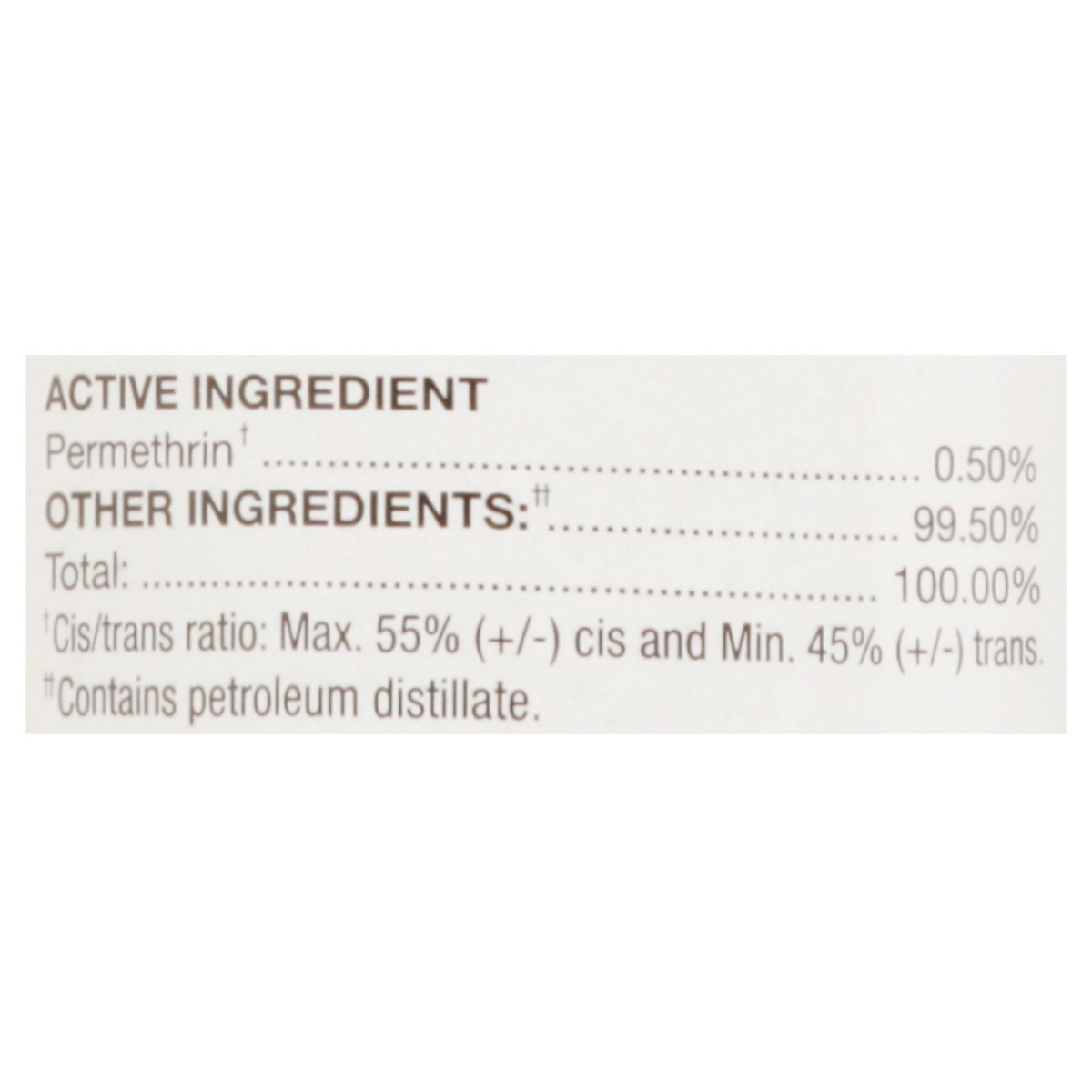 Active Ingredients: Permethrin, (Cis/Trans Ratio: Max, 55% (+/-) Cis and Min, 45% (+/-)Trans): (0.50 %) Other Ingredients: (Contains Petroleum Distillate) (99.50%) Total: (100%).