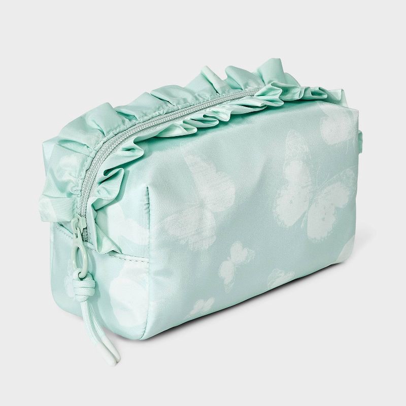 - Butterfly printed ruffle pouch, measures 7 inches wide