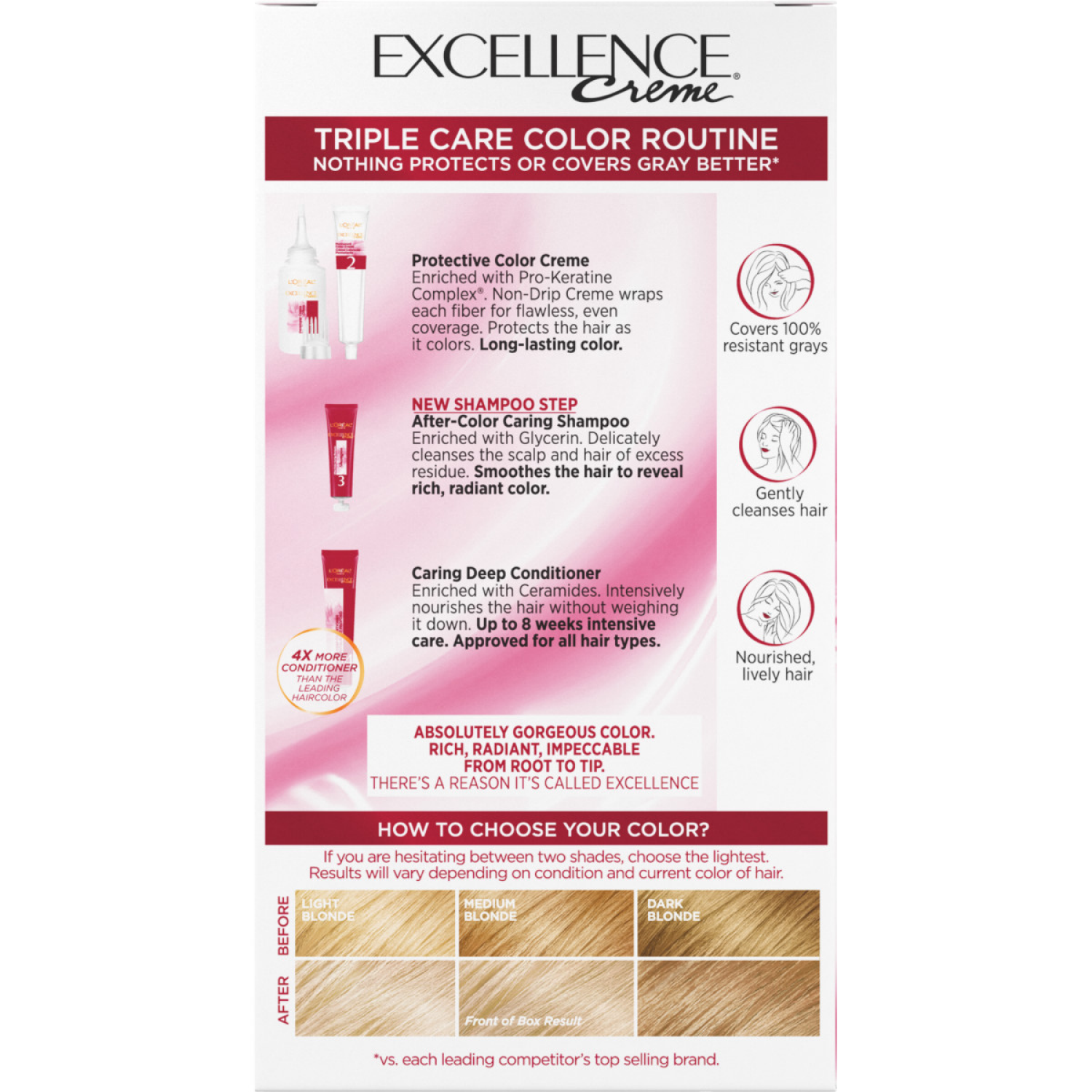 There’s a reason it’s called Excellence. L'Oreal Excellence hair color is designed with an exclusive triple protection system that deeply cares for your hair, and with 100% gray hair coverage even on …