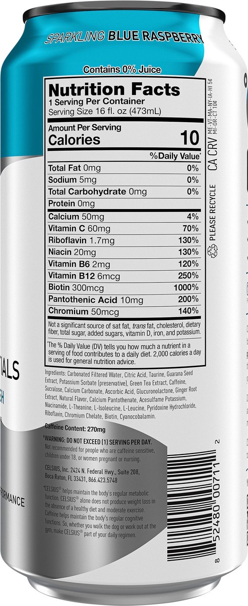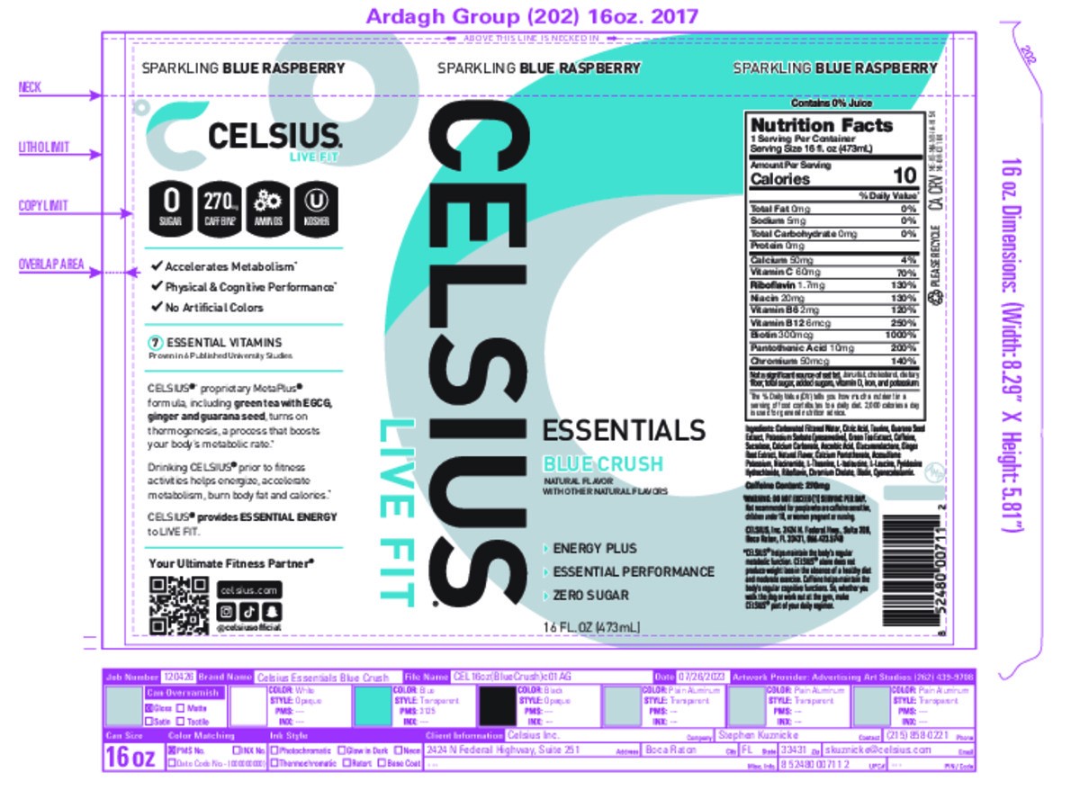CELSIUS ESSENTIALS, Sparkling Blue Crush, Performance Energy Drink 16 Fl Oz Single Can