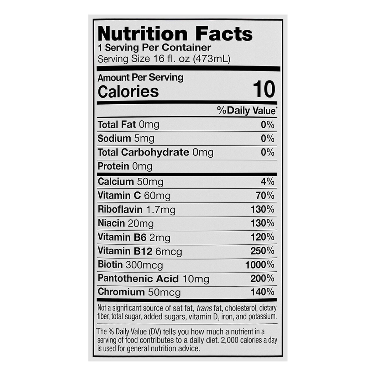 Carbonated Filtered Water, Citric Acid, Taurine, Guarana Seed Extract, Potassium Sorbate (Preservative), Green Tea Extract, Caffeine, Sucralose, Calcium Carbonate, Ascorbic Acid, Glucuronolactone, Gin…