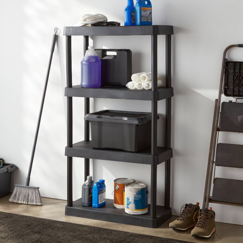 4 Tier Plastic Shelf Unit Black - Brightroom™: Utility Storage Shelves, 55.8" Height, 70 lbs Capacity, Freestanding
