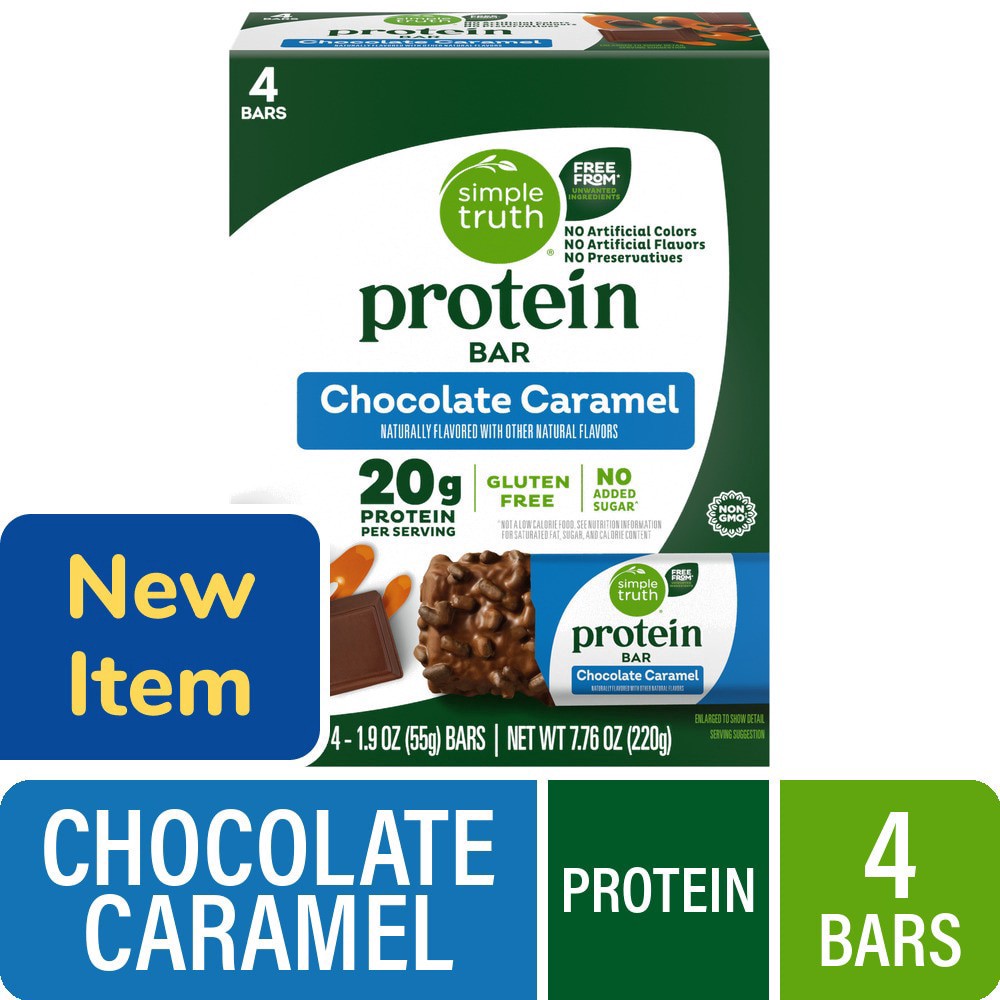 Simple Truth® Protein Chocolate Caramel Protein Bar is a tasty treat. These bars are non-GMO, gluten free, and preservative free with no added sugarˆ, no artificial colors, and no artificial flavors f…
