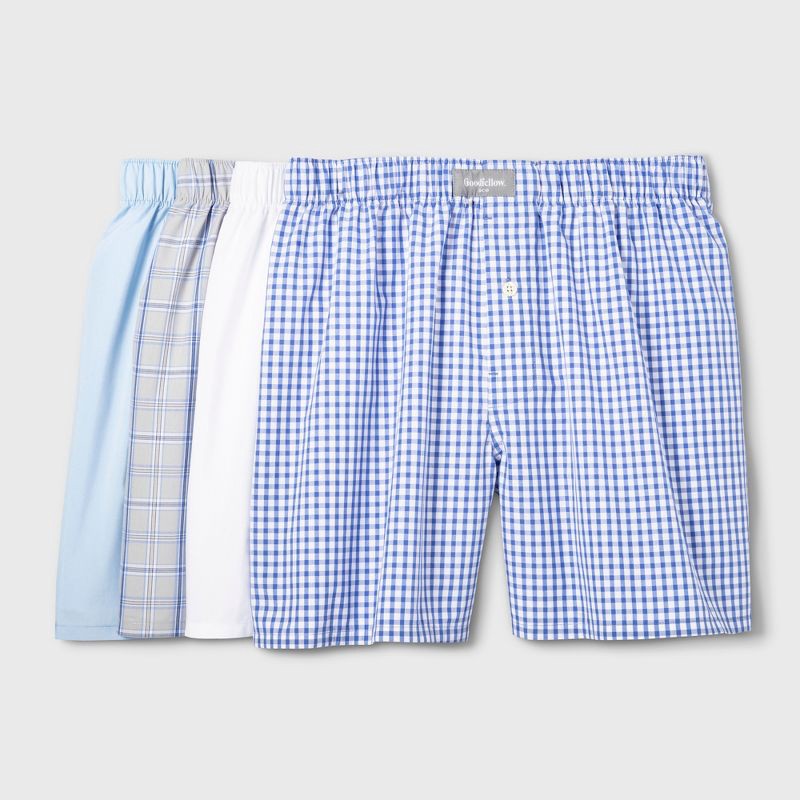 Prioritize comfort with style with this Pack of 4 Woven Boxer Shorts from Goodfellow & Co™. Made from a soft and breathable cotton-blend fabric with a comfortable mid-rise cut, these boxer shorts feat…