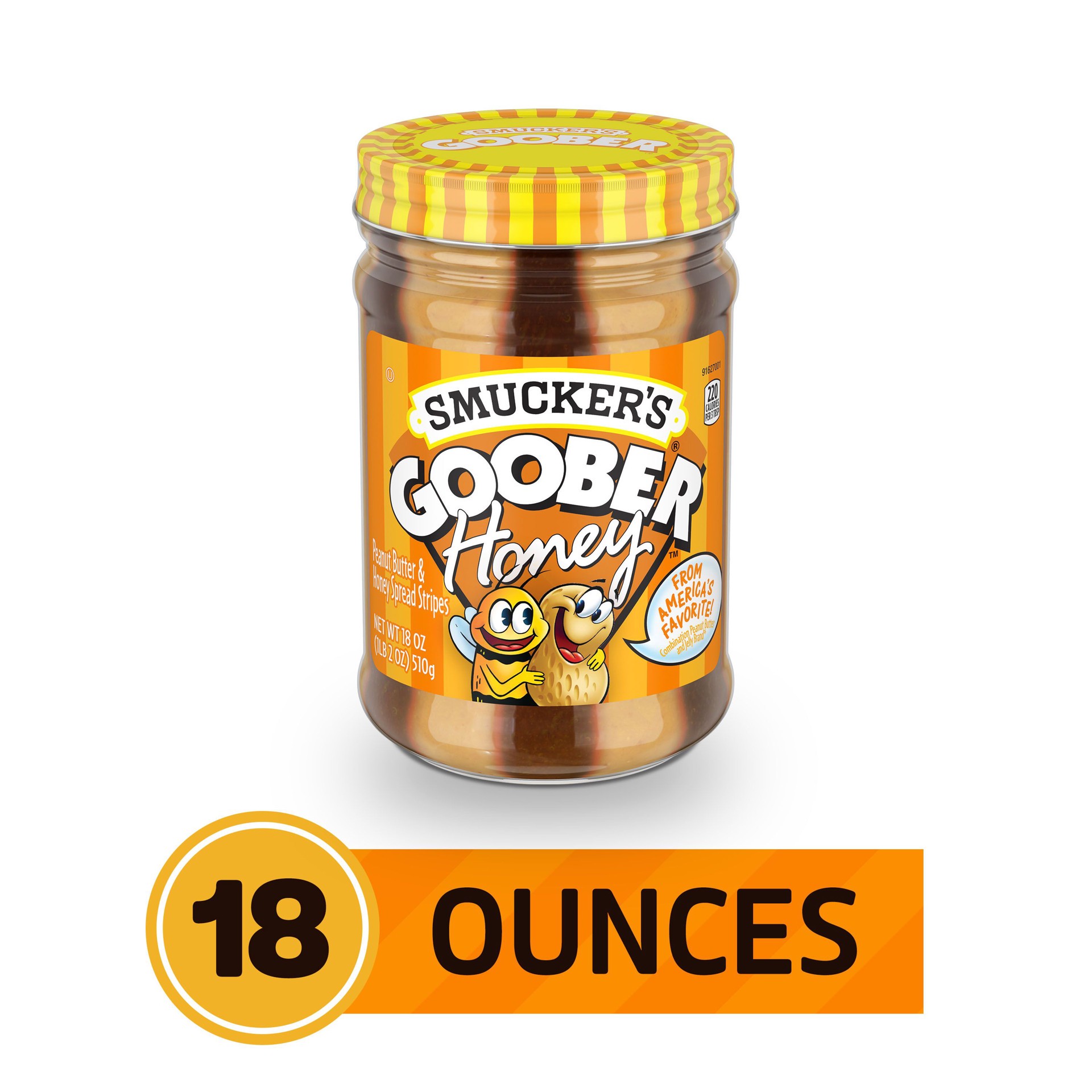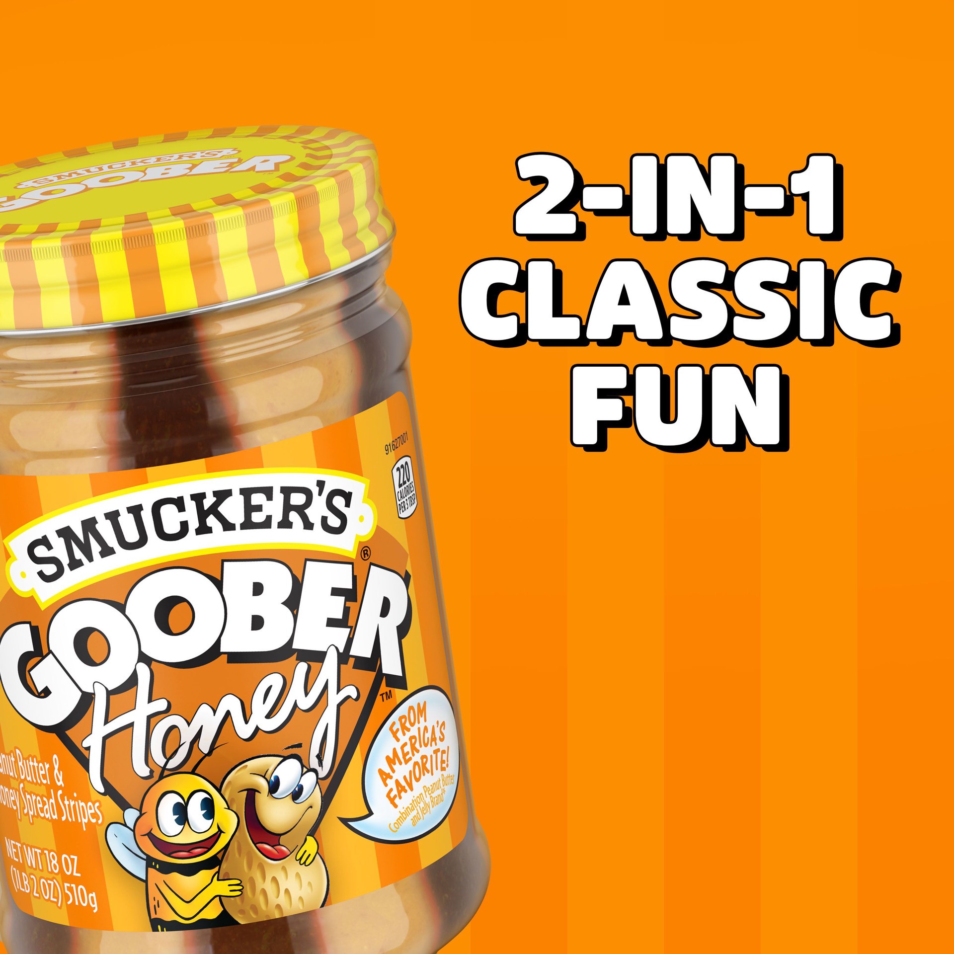- CONTAINS: One 18-oz. jar of Smucker's Goober Peanut Butter & Honey Spread Stripes