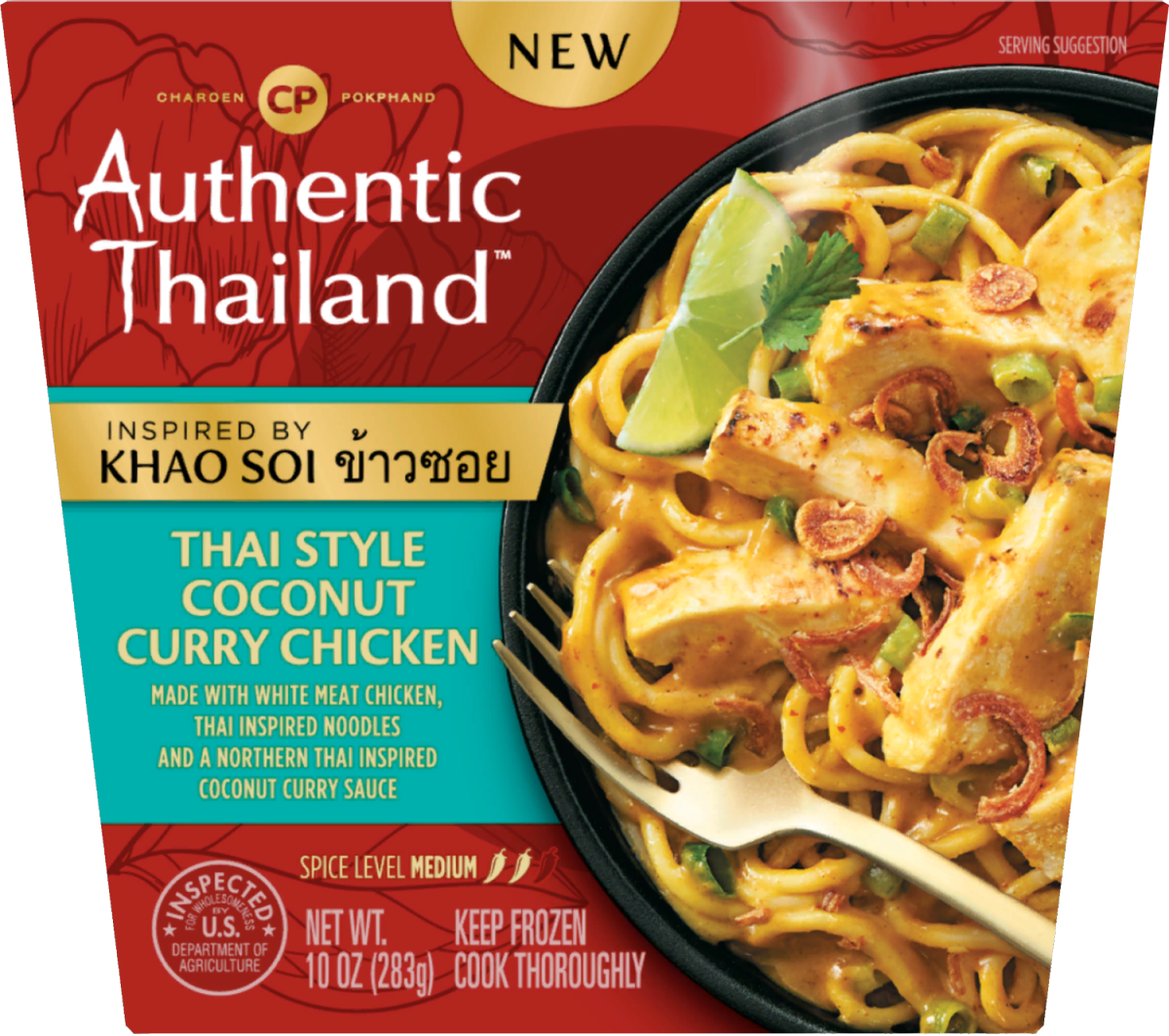 Made with white meat chicken, Thai inspired noodles and a northern Thai inspired coconut curry sauce