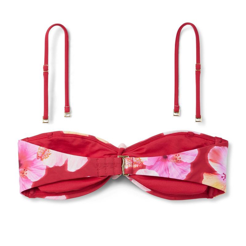 Women's Floral Print and Center Floral Brooch Bandeau Bikini Top - Wild Fable™ Burgundy XS