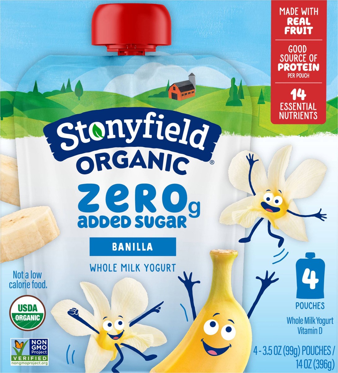 Stonyfield Org Kids Zero G Added Sugar Whole Milk Yogurt Pouches, Banilla, 4-3.5 Oz - 4-3.5 Oz