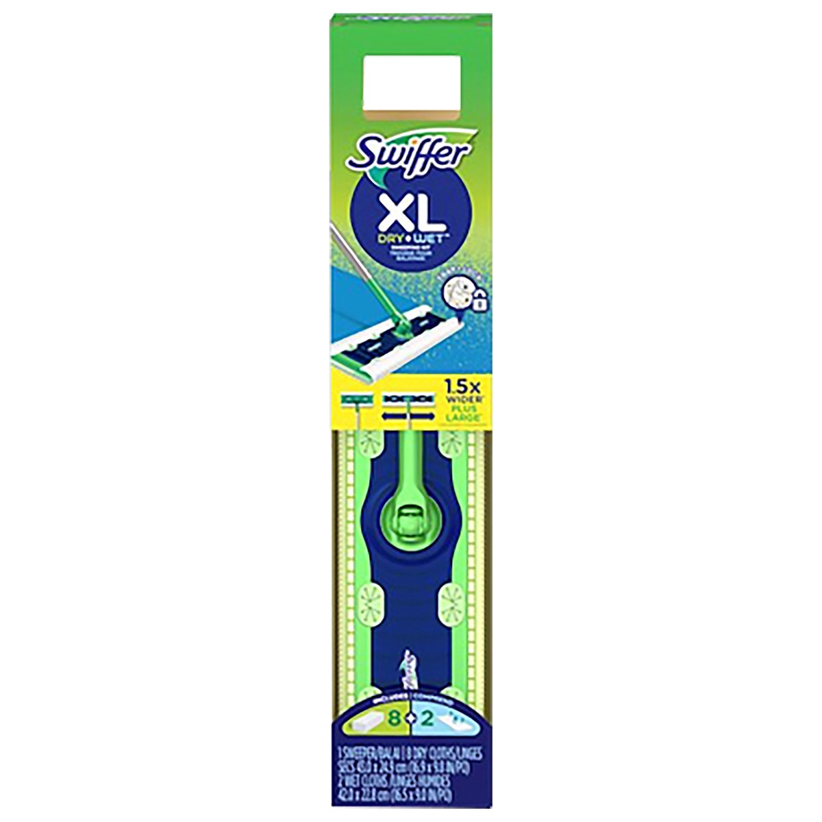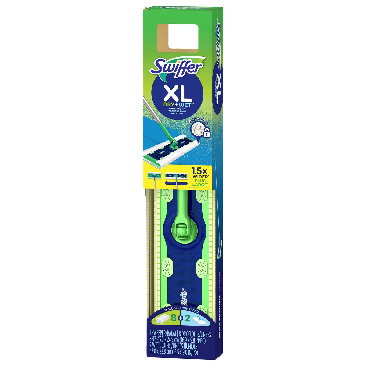 Swiffer Sweeper XL is 1.5X wider than our regular Swiffer Sweeper. It traps and locks even more dirt, dust and hair with each swipe