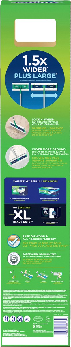 Swiffer Sweeper XL is 1.5X wider than our regular Swiffer Sweeper. It traps and locks even more dirt, dust and hair with each swipe