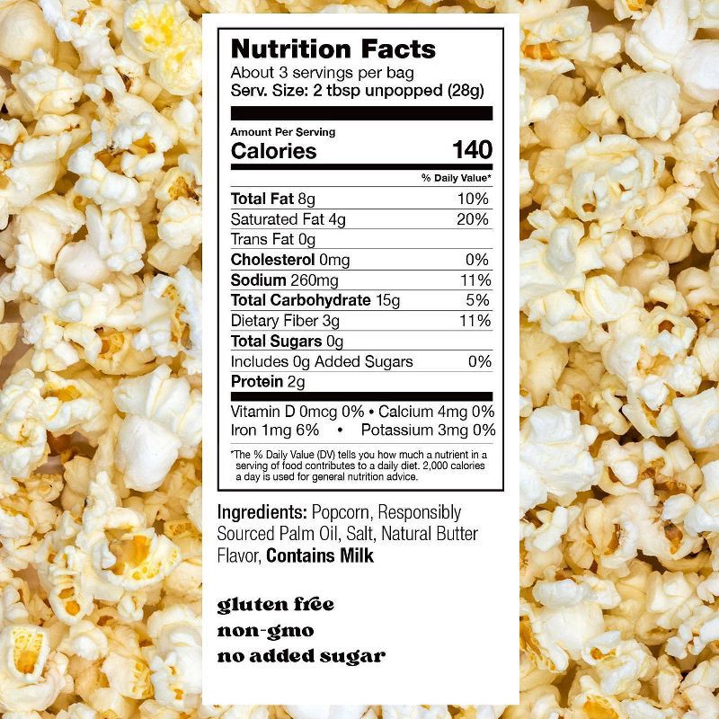 Popcorn, Responsibly Sourced Palm Oil, Salt, Natural Butter Flavor, Contains Milk