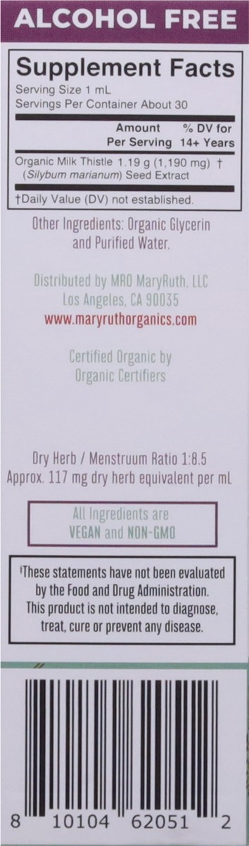 Enjoy milk thistle in an easy-to-take, alcohol-free liquid tincture from Mary Ruth's. Good for helping support liver health, it has 1,190mg per serving and is organic.