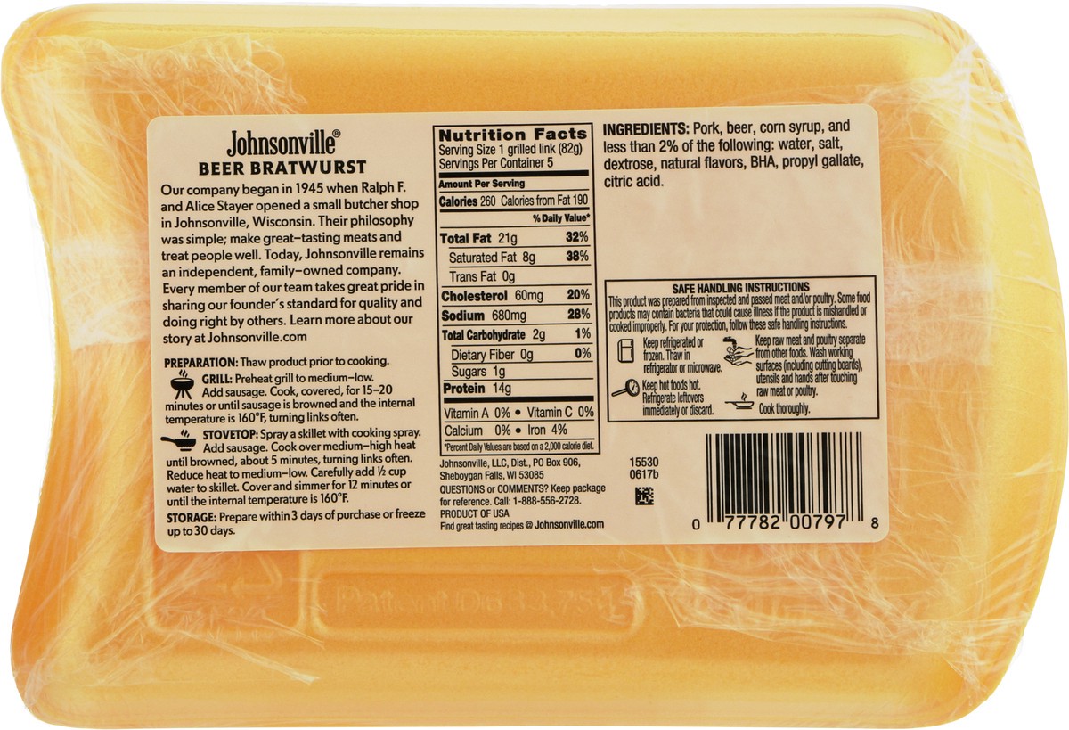 Johnsonville Beer N Bratwurst 5 Links - 19 Oz