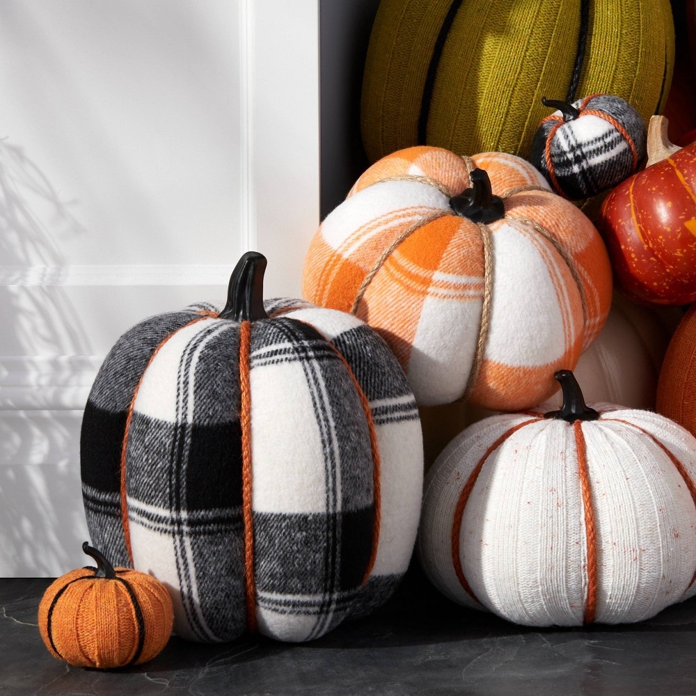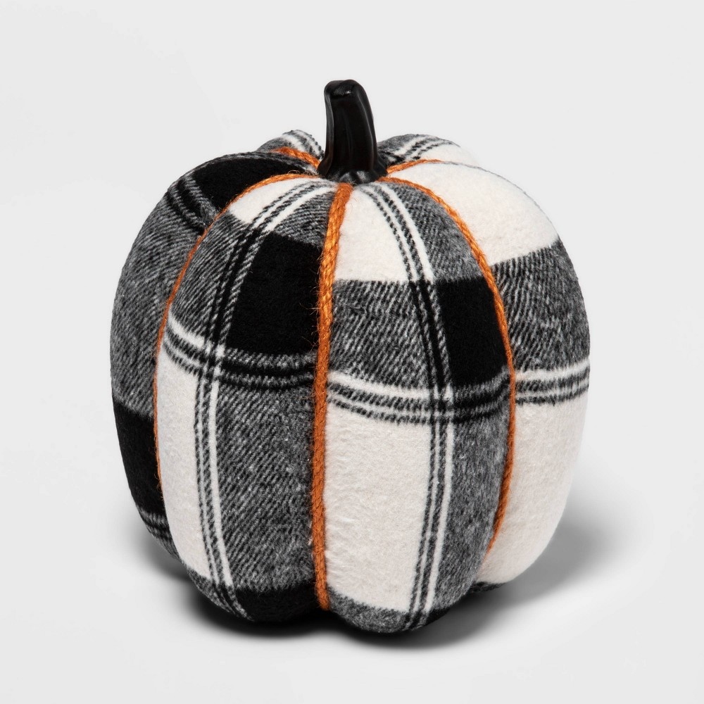 The Large Harvest Plaid Pumpkin from Hyde & EEK! Boutique? puts a rustic spin on classic seasonal decor. Made from fabric, this pumpkin accent piece is designed with black-and-white plaid print for fu…