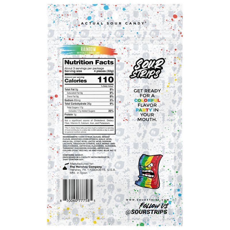 - Contains one (1) 3.4-ounce bag of SOUR STRIPS Rainbow Flavored Chewy Candy