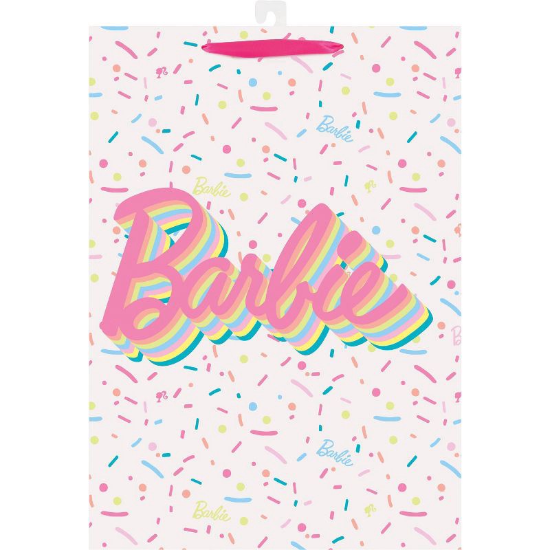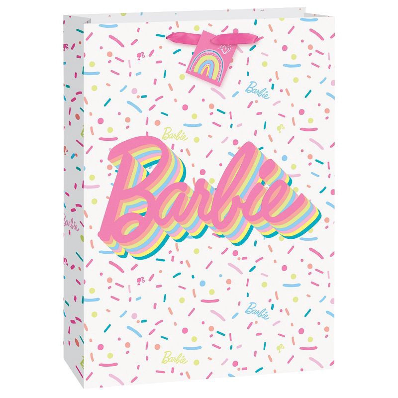 Make every gift feel like a party at the dreamhouse with our Barbie Sprinkles Gift Bag! Featuring a bold, rainbow-shadowed Barbie logo surrounded by colorful confetti sprinkles, this oversized bag bri…