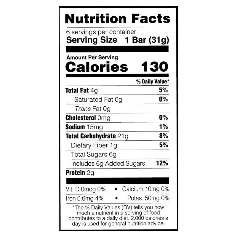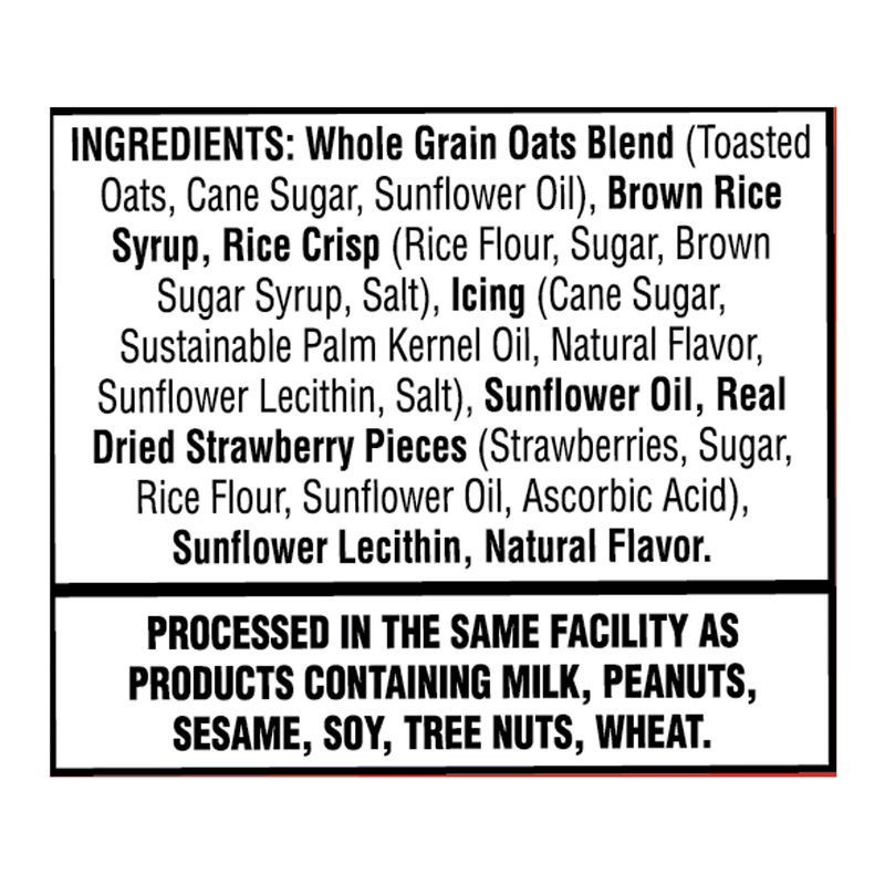 Whole Grain Oats Blend (Toasted Oats, Cane Sugar, Sunflower Oil), Brown Rice Syrup, Rice Crisp (Rice Flour, Sugar, Brown Sugar Syrup, Salt), Icing (Cane Sugar, Sustainable Palm Kernel Oil, Natural Fla…