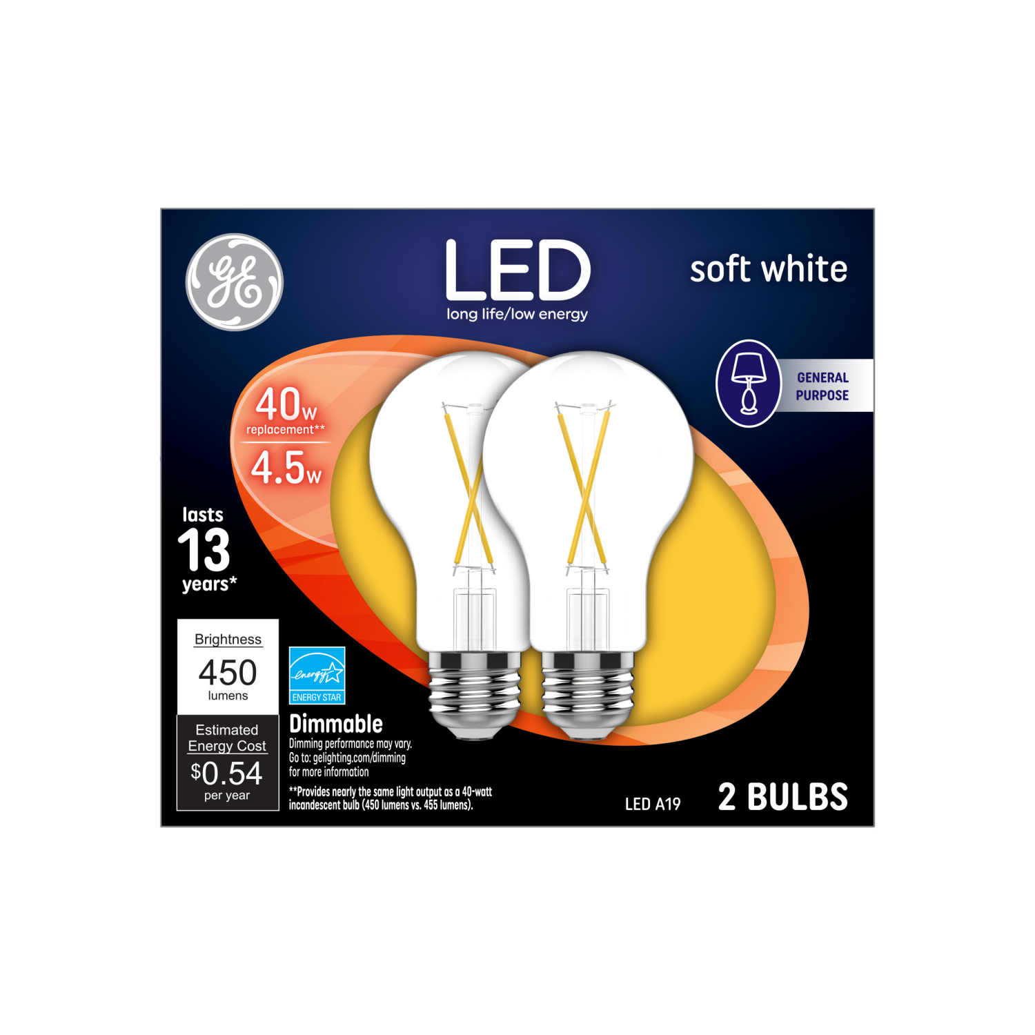 Brightness Quality: 450 Lumens. Energy Info: $0.54 based on 3 hrs/day, 11 cents/kWh. Cost depends on rates and use. 4.5 Watts. Has Energy Star Logo Package Info: 2-Pack 2 Bulb Info: LED Bulb Life: 13.…
