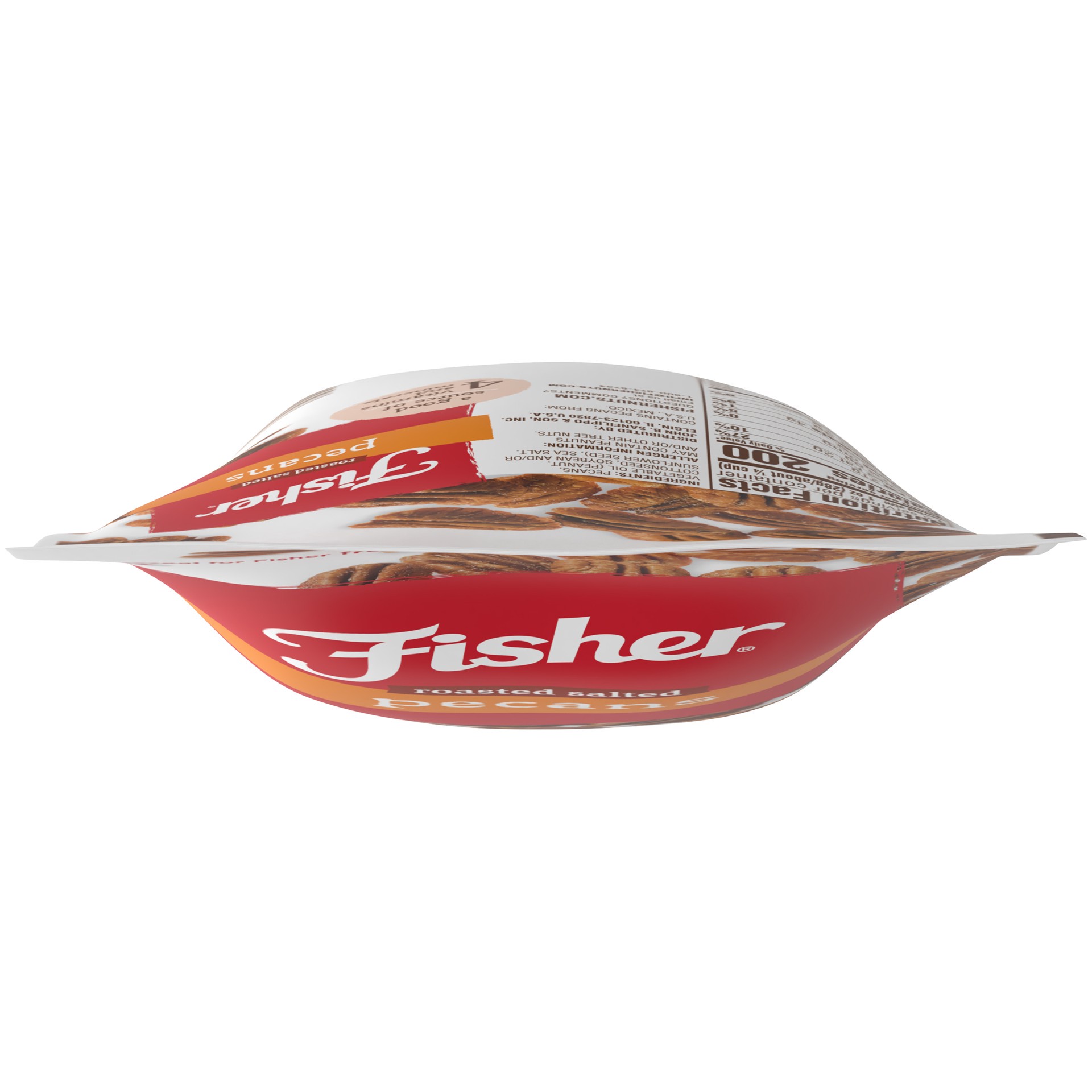 A good source of 4 vitamins and minerals. fishernuts.com. Questions? Comments? Email us at info(at)fishernuts.com. 1-800-874-8734. Reseal for fisher freshness! Contains pecans from U.S.A., Mexico.