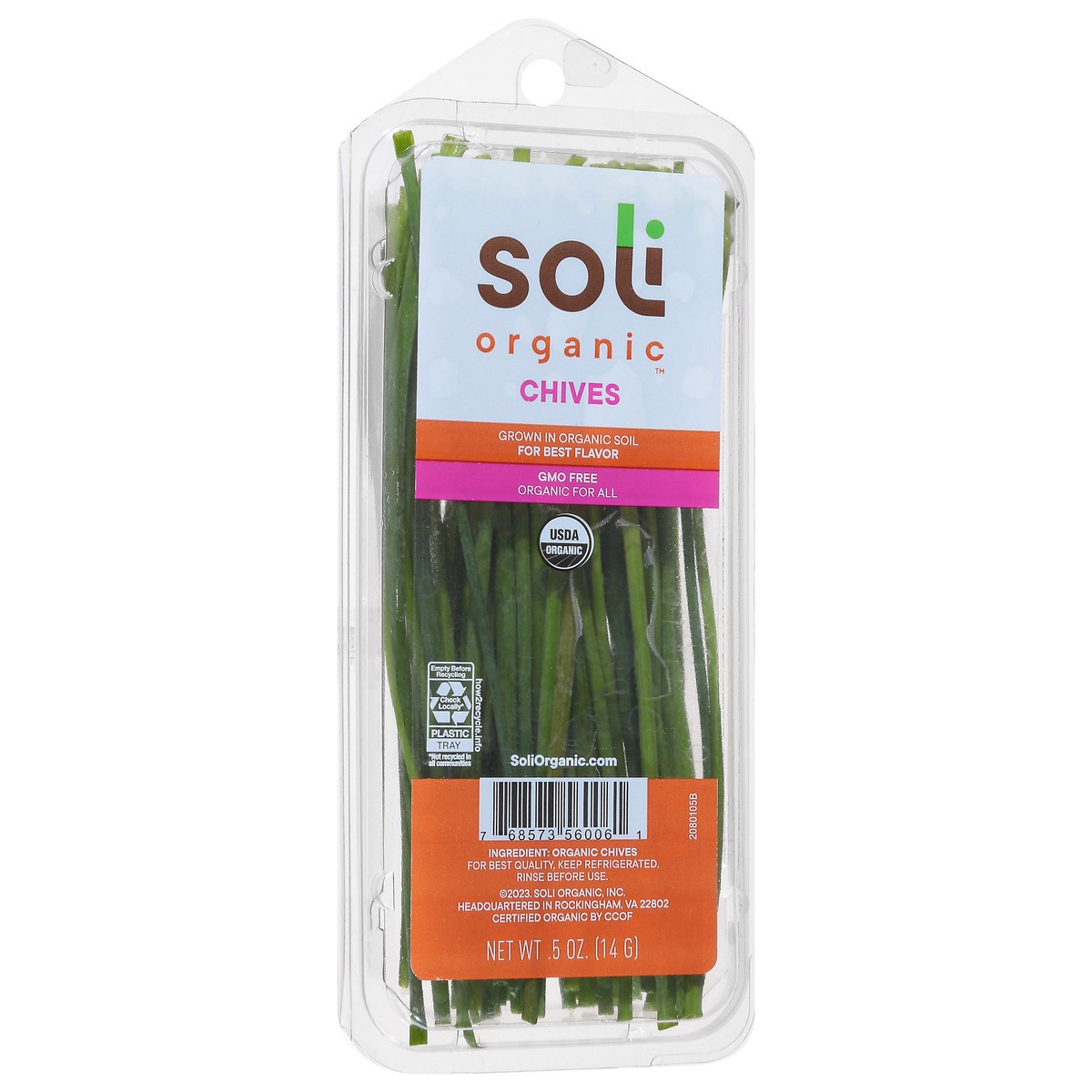 Mild, onion-like flavor, with a hint of garlic, chives are used as a garnish for savory dishes. Its mild flavor lends itself well to soups, dips, potatoes, seafood, and eggs.