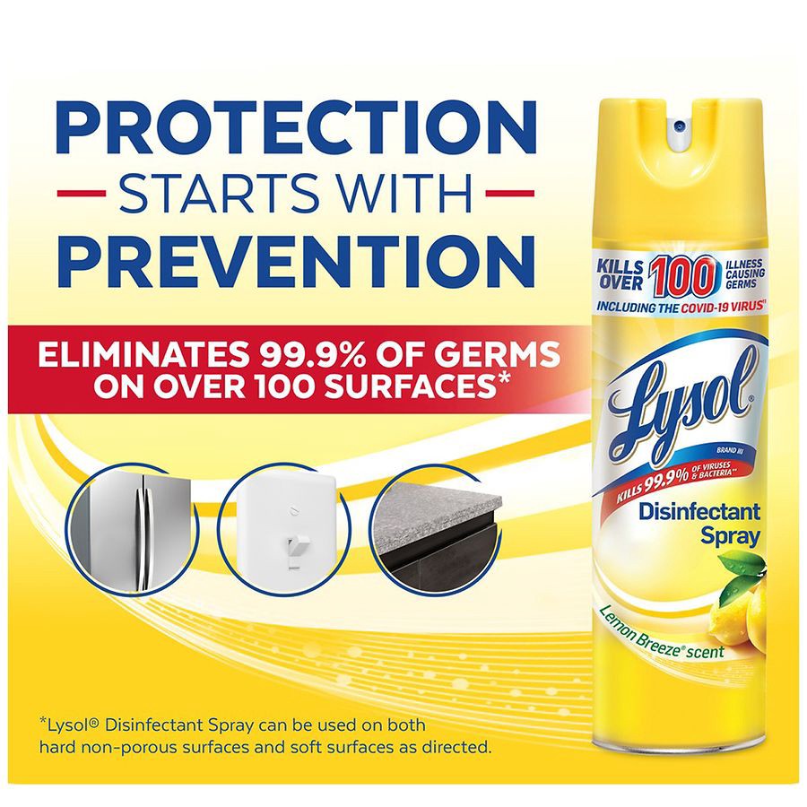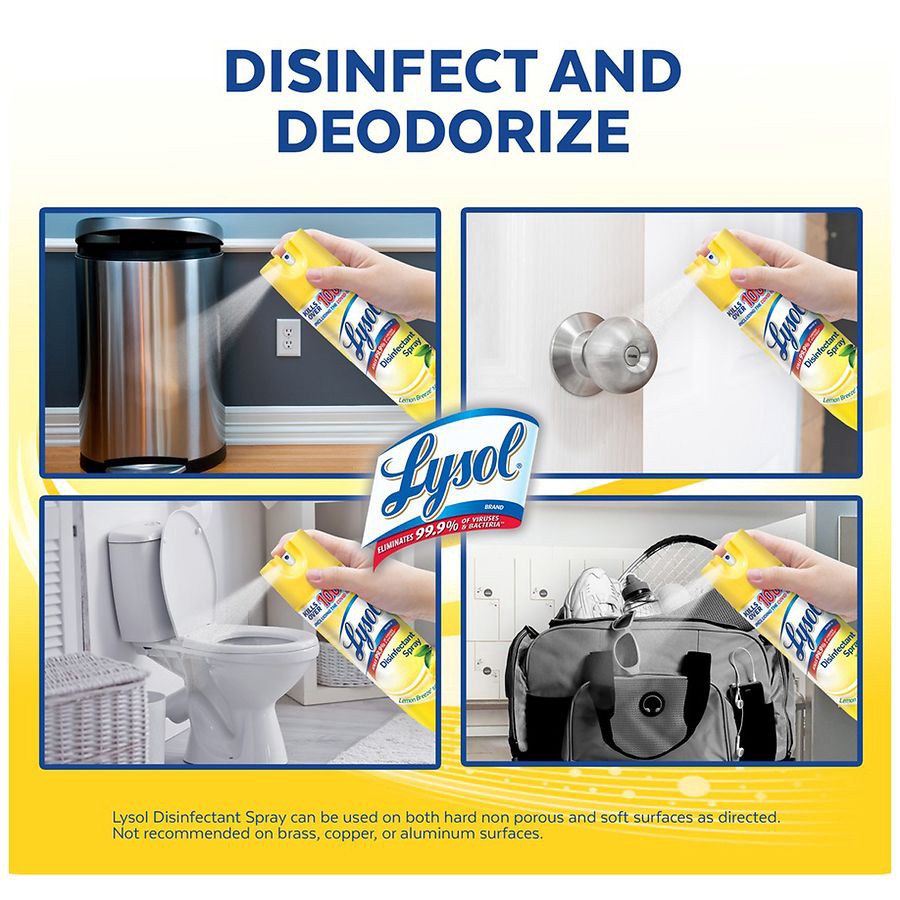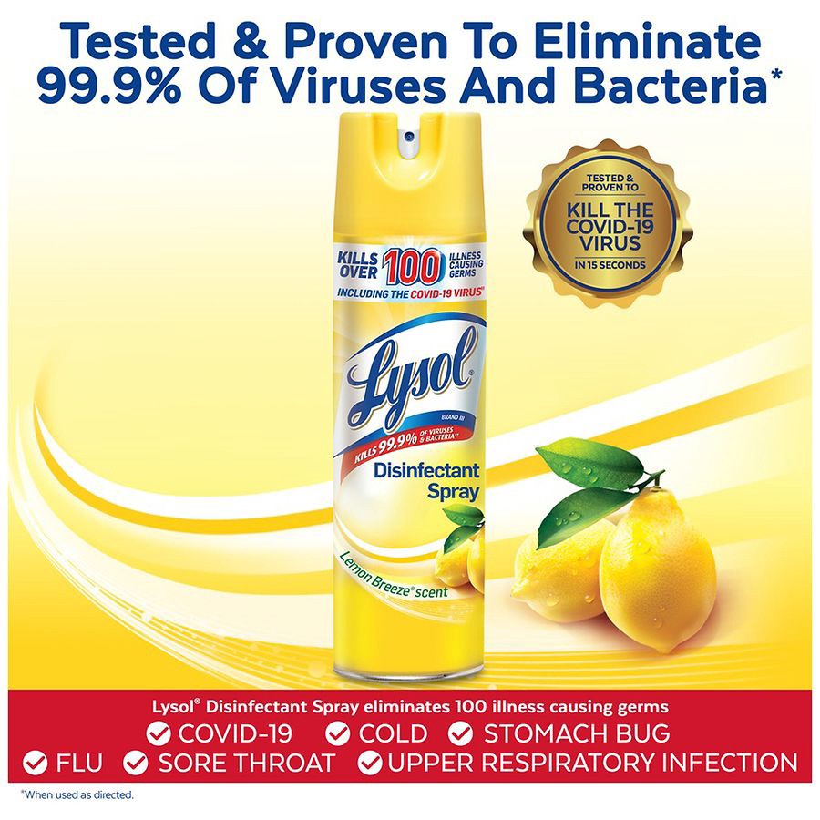 - LYSOL DISINFECTANT SPRAY: This household essential is tested and proven to kill 99.9% of viruses and bacteria