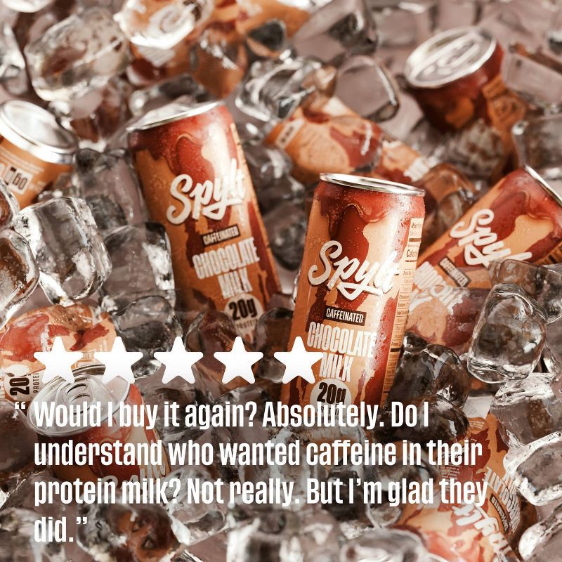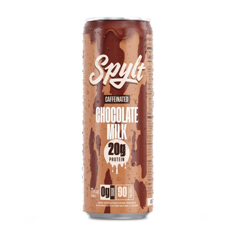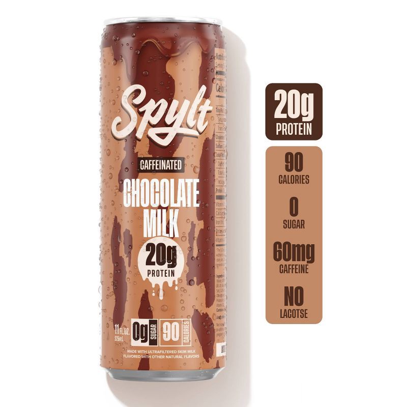 - CAFFEINATED PROTEIN BOOST: Chocolate milk with a giant caffeinated kick in the pants. With 60mg of liquid caffeine, and 20g of protein milk, SPYLT is your caffeinated compadre and AFTERNOON PICK ME UP!