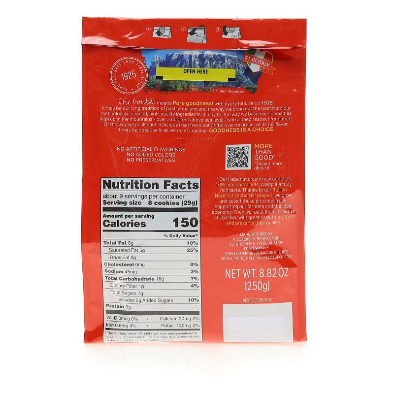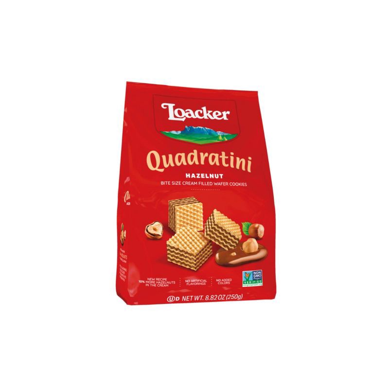Four layers of the smoothest cream filling are held by five light, crispy wafers. The fine hazelnut cream with selected Italian hazelnuts will guarantee delicious hazelnut pleasure. Loacker exclusivel…