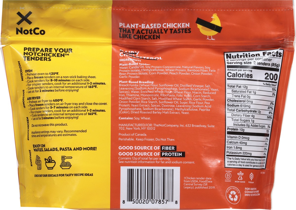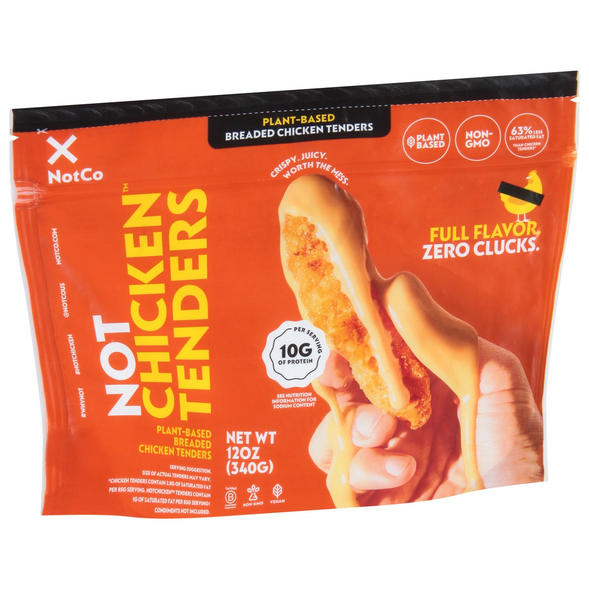 Take a bite and savor the classic, crispy chicken taste of NotCo NotChicken Frozen Plant-Based Breaded Chicken Tenders. Premium size tenders with full chicken taste, our tenders are not soggy, not sta…