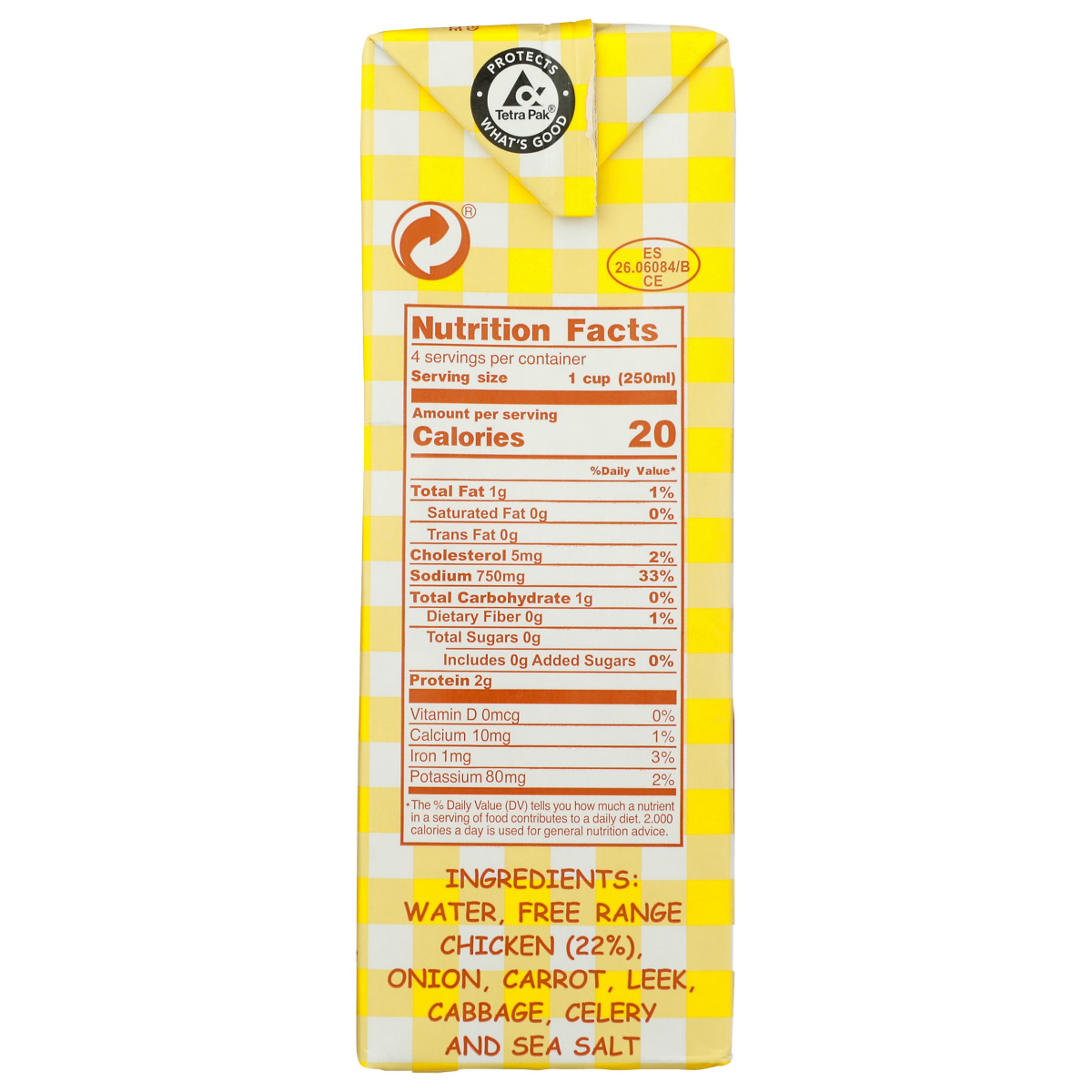 Water, Free Range Chicken (22%), Onion, Carrot, Leek, Cabbage, Celery and Sea Salt.