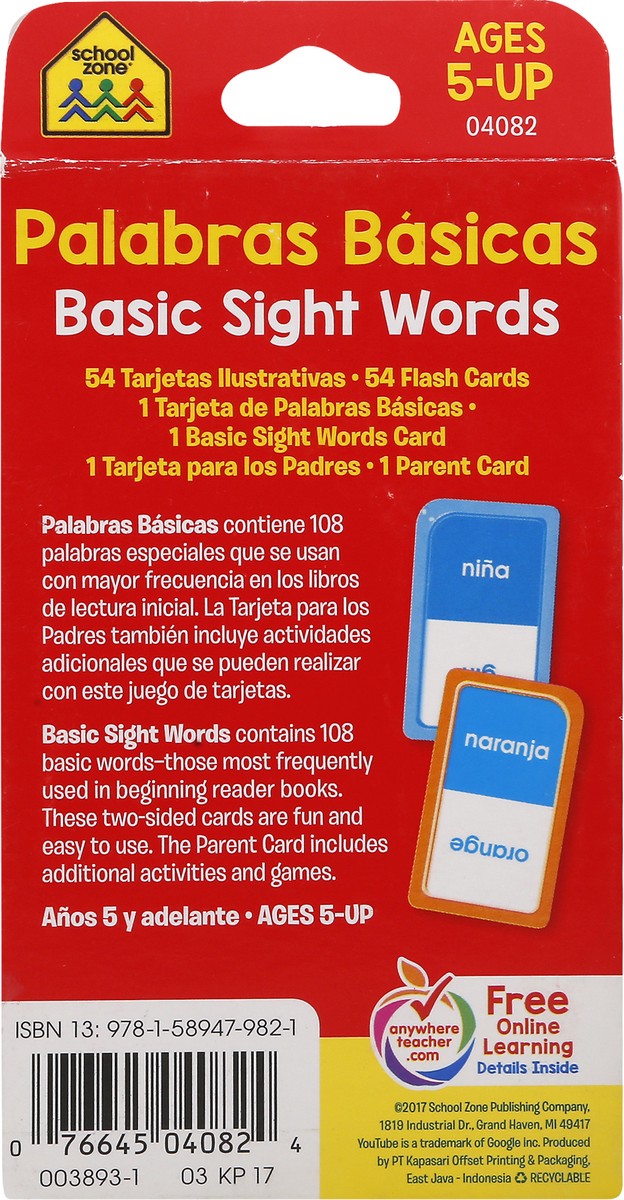 54 flash cards. 1 basic sight words card.= 1 parent card. Basic Sight Words contains 108 basic words-those most frequently used in beginning reader books. These two-sided cards are fun and easy to useā¦