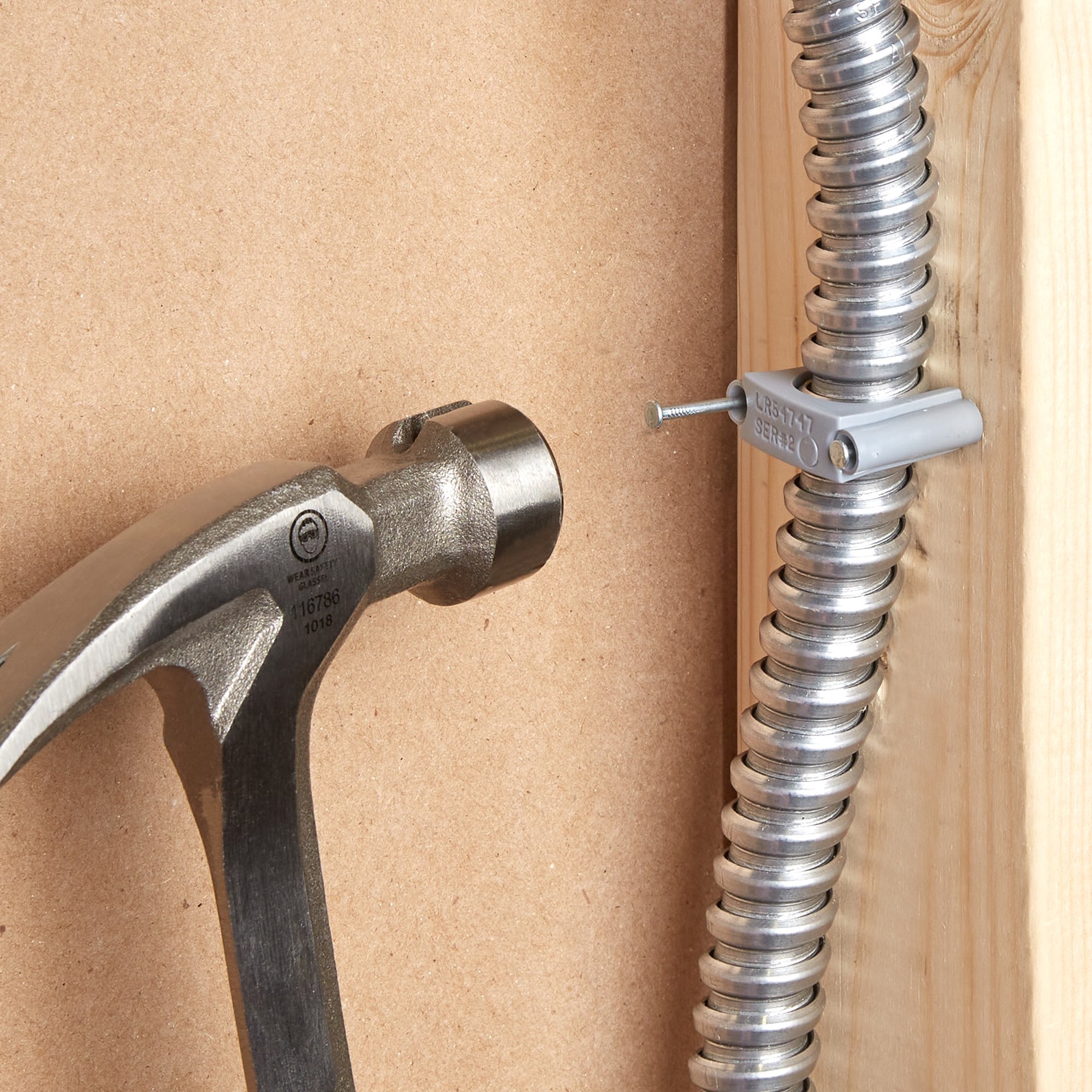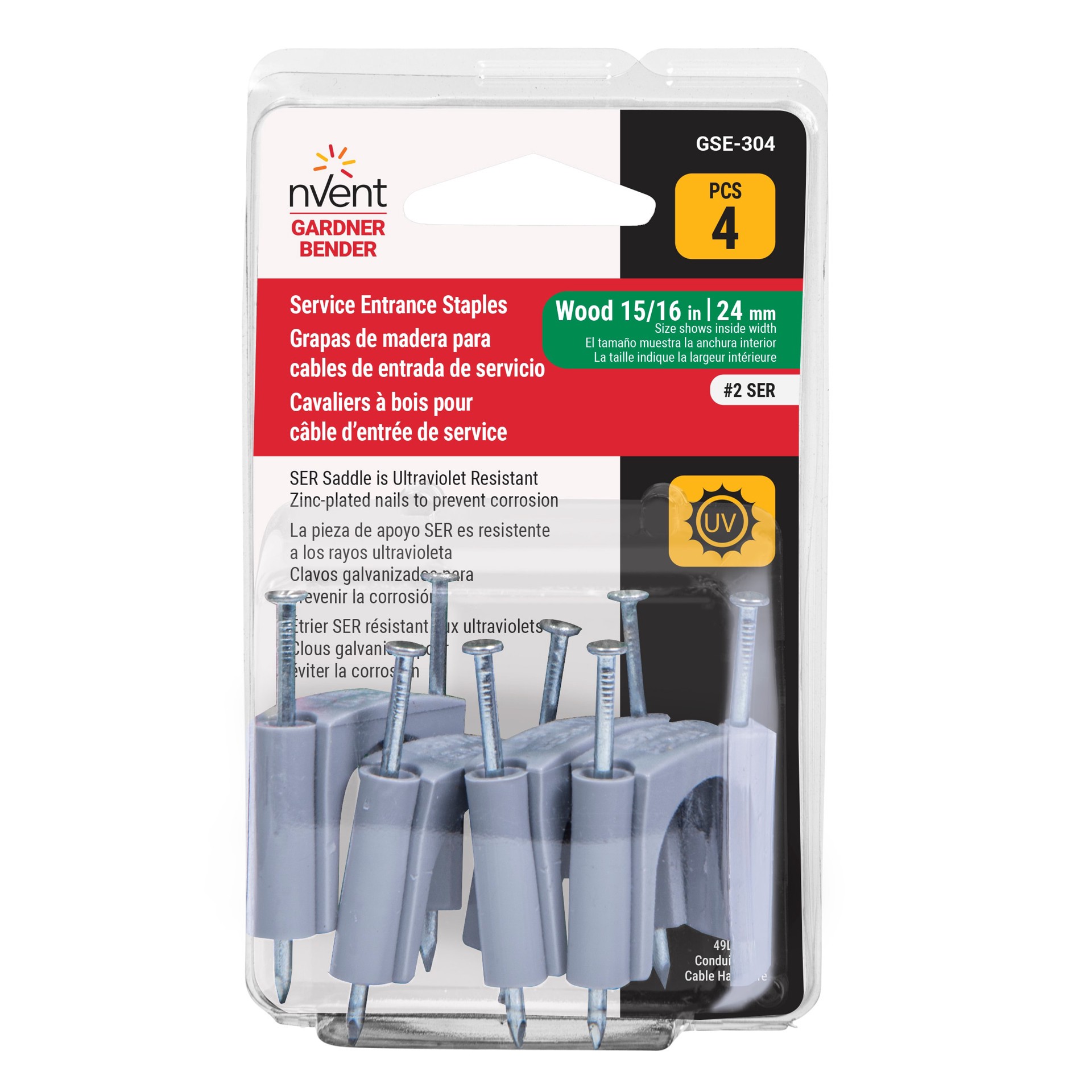 Polyethylene straps stabilized against UV rays and extreme cold; withstand deterioration and breakage. 4 per card. Service Entrance Staple Strap Staple. UL Listed. Secures #2 SER service entrance cabl…