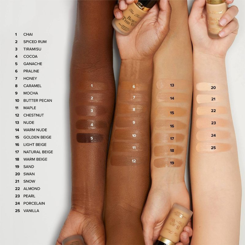 Too Faced Born This Way Undetectable foundation formula that delivers 24-hour hydration + color-true wear that's transfer-resistant, waterproof, and sweat and humidity proof.How to Apply: Apply with F…