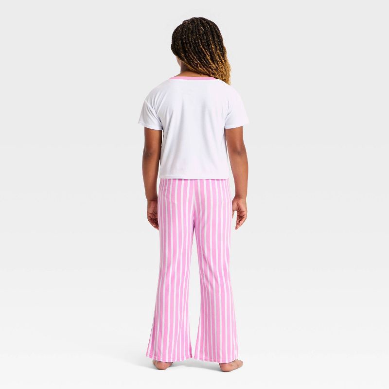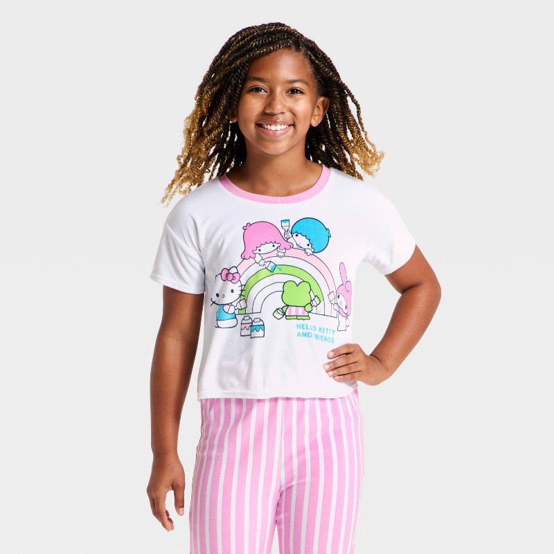 These pajamas feature your favorite Hello Kitty & Friends characters along with a stripe print. This 2-piece set includes a short sleeve t-shirt with contrast trim and flare pajama pants with an elast…