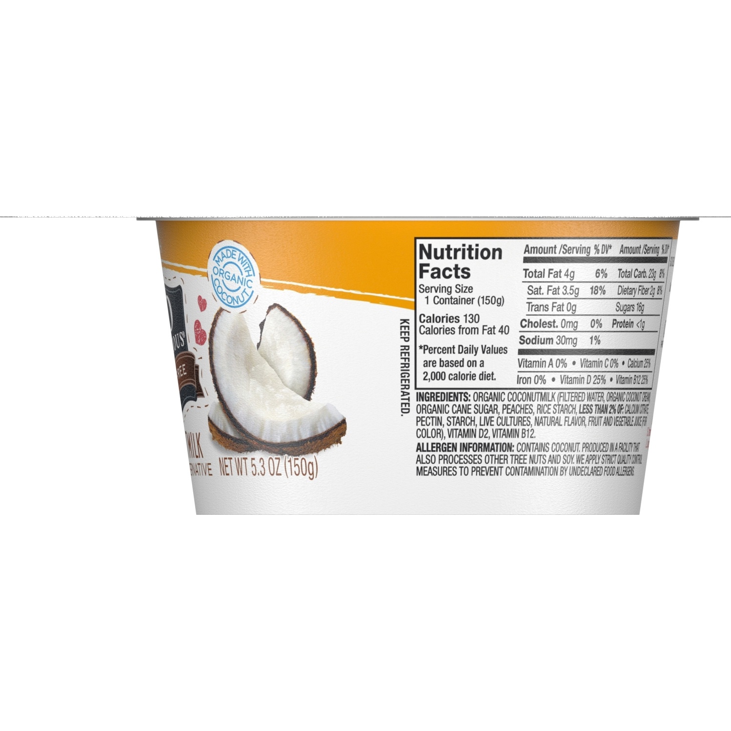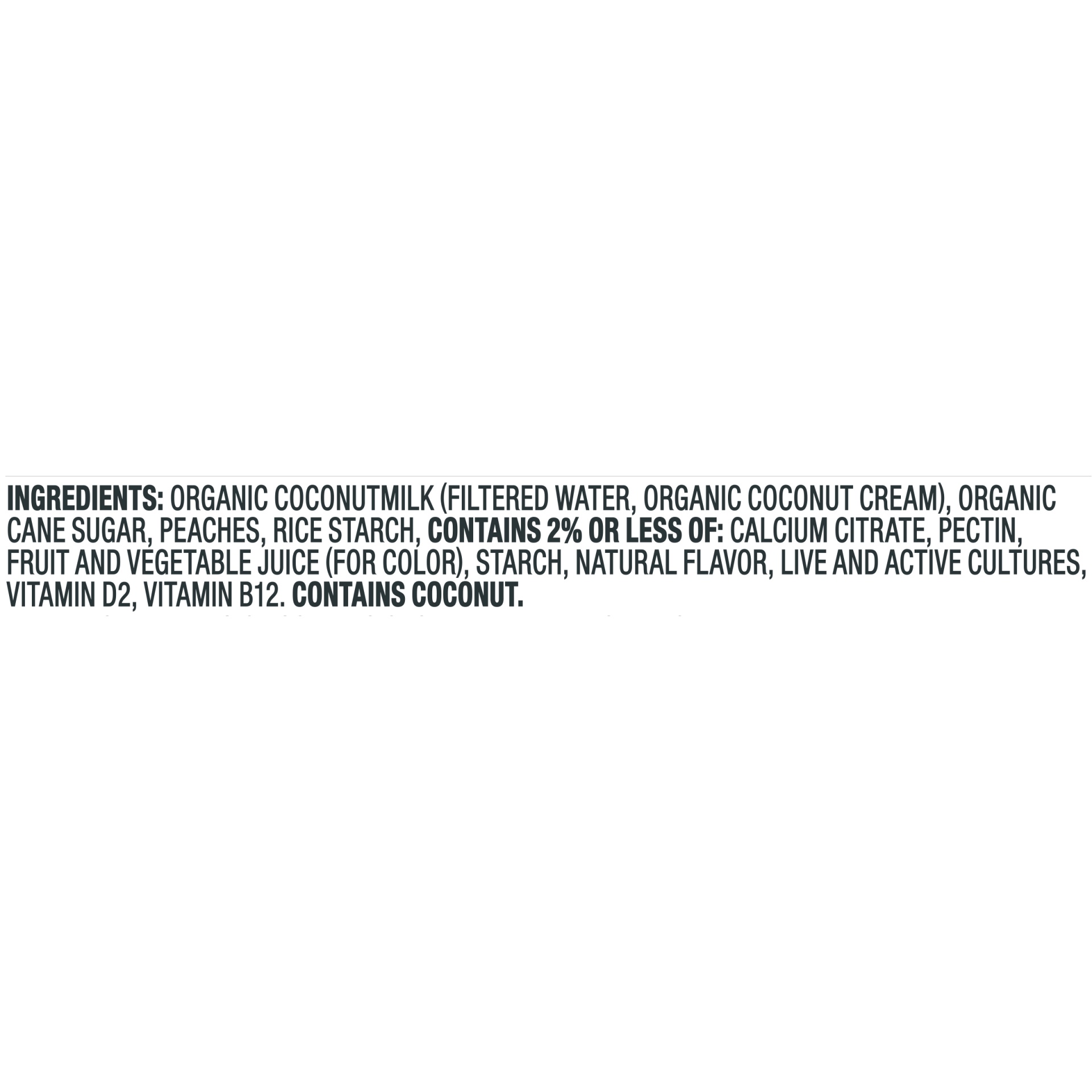 Organic Coconutmilk (Filtered Water, Organic Coconut Cream), Organic Cane Sugar, Peaches, Rice Starch, Contains 2% or Less of: Calcium Citrate, Pectin, Fruit and Vegetable Juice (for Color), Starch, N…