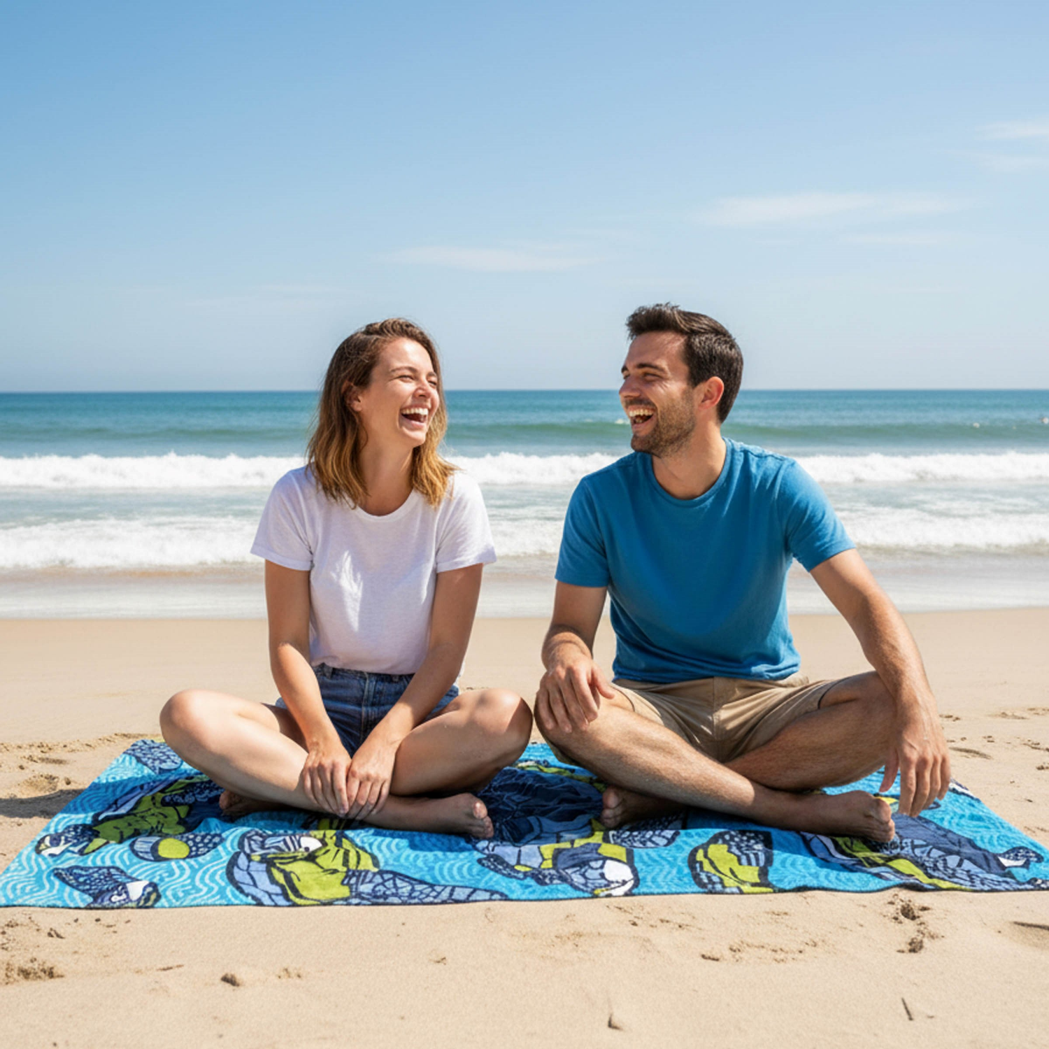 The soft and absorbent SOL BORNE Printed Turtle Beach Towel is the ideal companion for so many fun outdoor activities. This bright, multi-colored towel features a vibrant pattern of color includes a h…