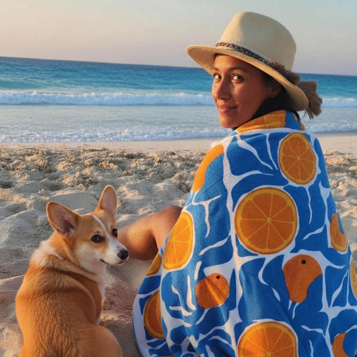 Sol Borne Printed Beach Towel, 34x68, Citrus Moss