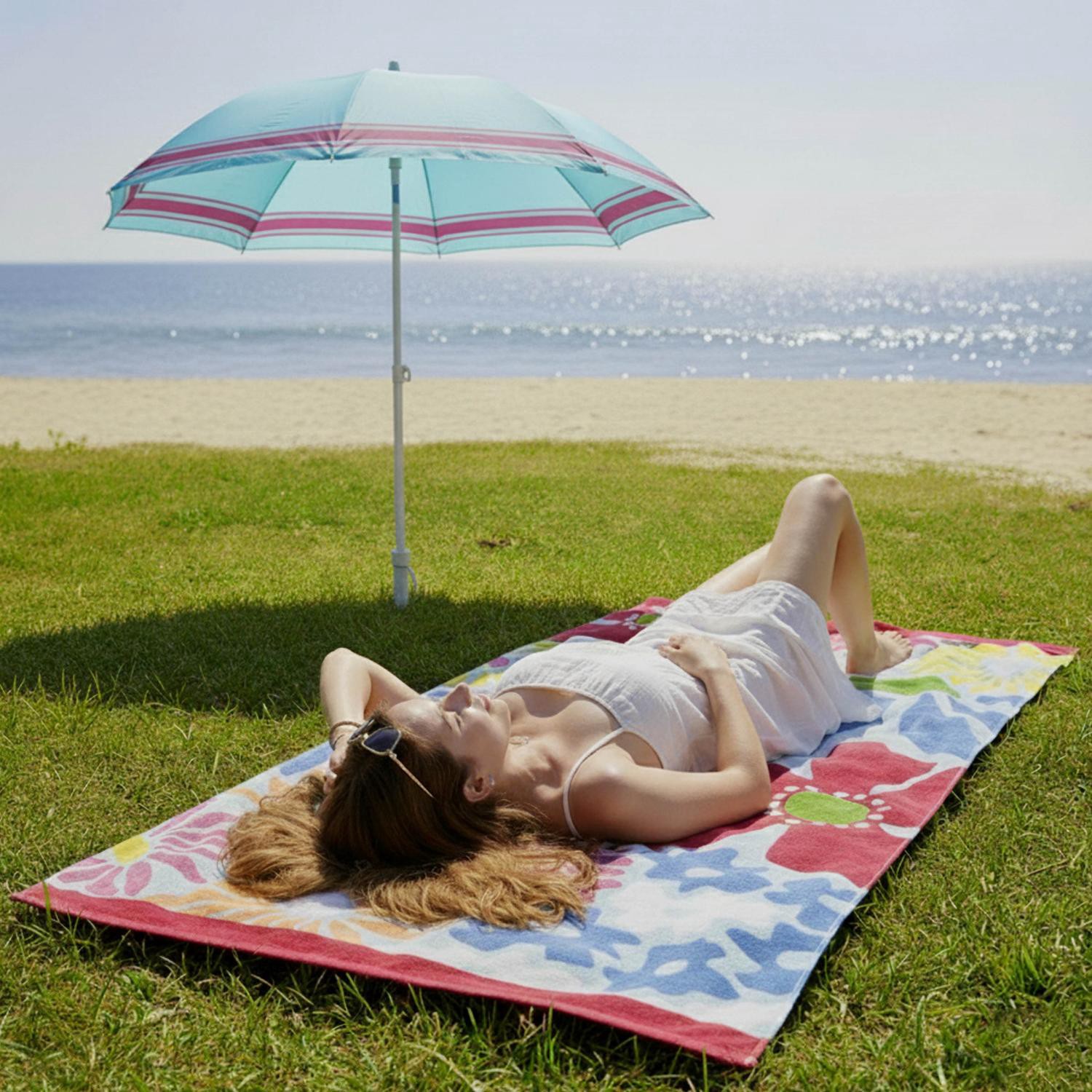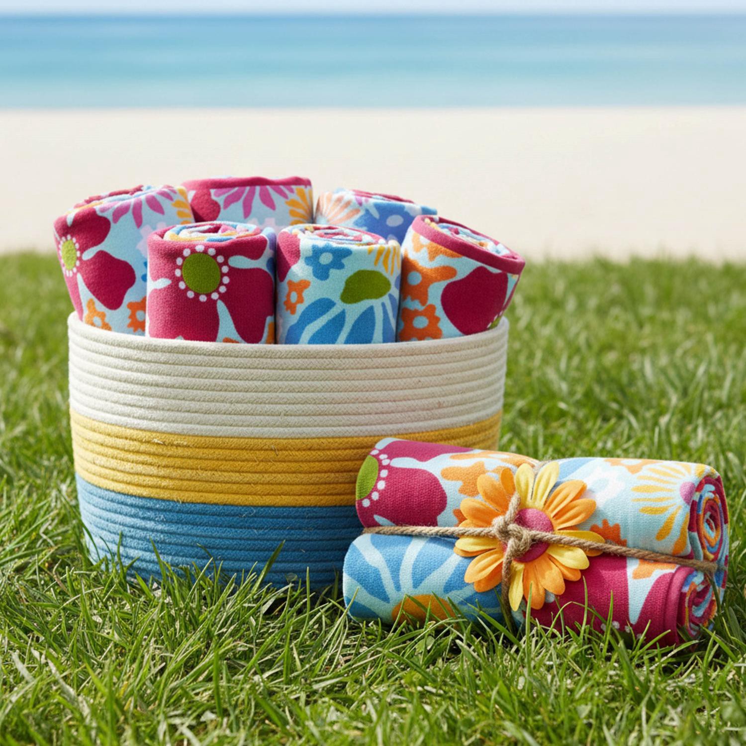 The soft and absorbent SOL BORNE Printed Big Bloom Beach Towel is the ideal companion for so many fun outdoor activities. This bright, multi-colored towel features a vibrant pattern of color includes …