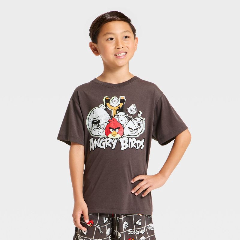 Make bedtime extra sweet with the Boys' 2pc Angry Birds T-Shirt and Shorts Pajama Set in Black. This breathable two-piece set includes a short-sleeve t-shirt and matching pull-on pajama shorts, perfec…