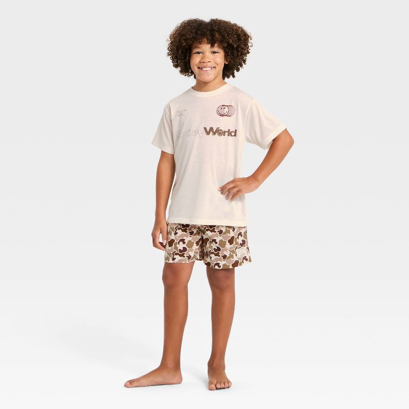 Make bedtime extra sweet with the Boys' 2pc Smiley World Pajama Set in White. This breathable two-piece set includes a short-sleeve t-shirt and matching pull-on pajama shorts, perfect for comfy nights…