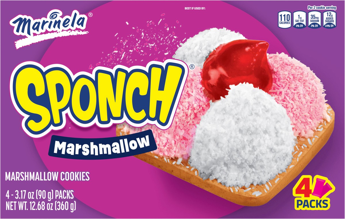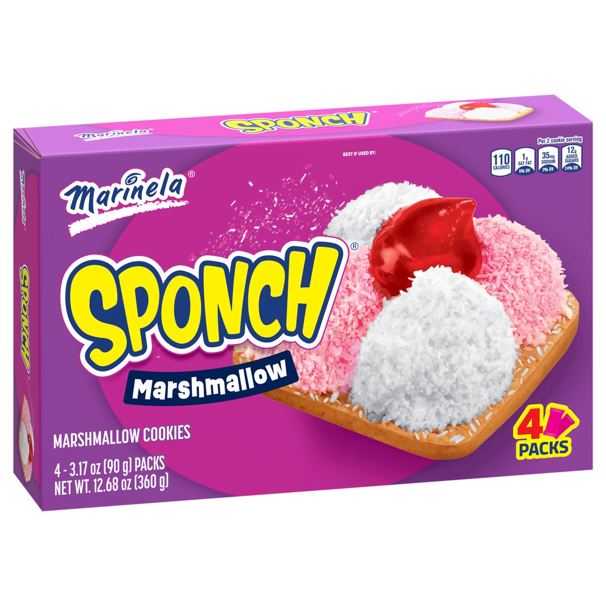 Marinela Sponch Marshmallow and Strawberry Coconut Cookies, 4 packs, Cookies, 12.68 oz Multipack