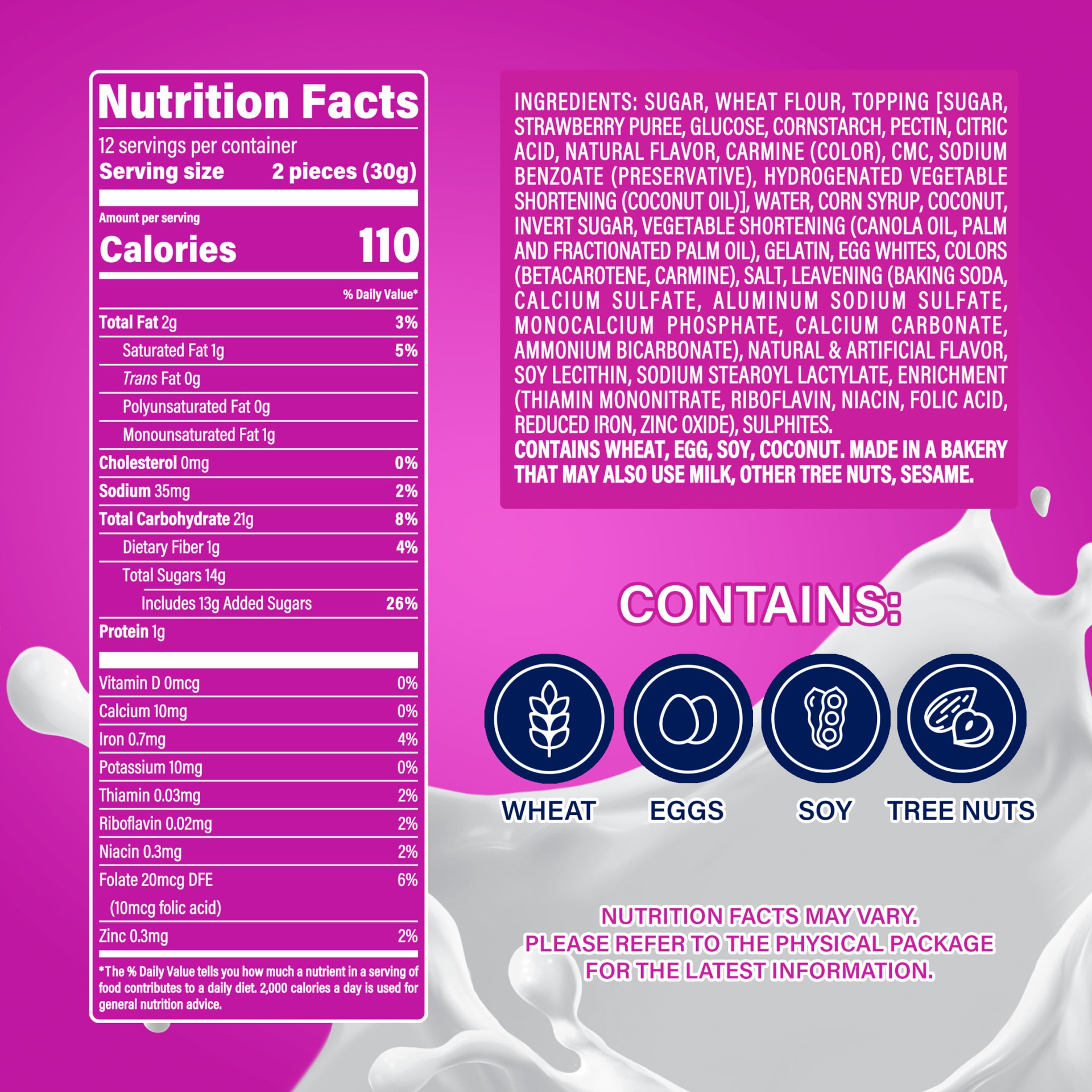 Sugar, Wheat Flour, Topping [Sugar, Strawberry Puree, Glucose, Cornstarch, Pectin, Citric Acid, Natural Flavor, Carmine, Carboxymethyl Cellulose, Sodium Benzoate, Hydrogenated Vegetable Shortening (Co…