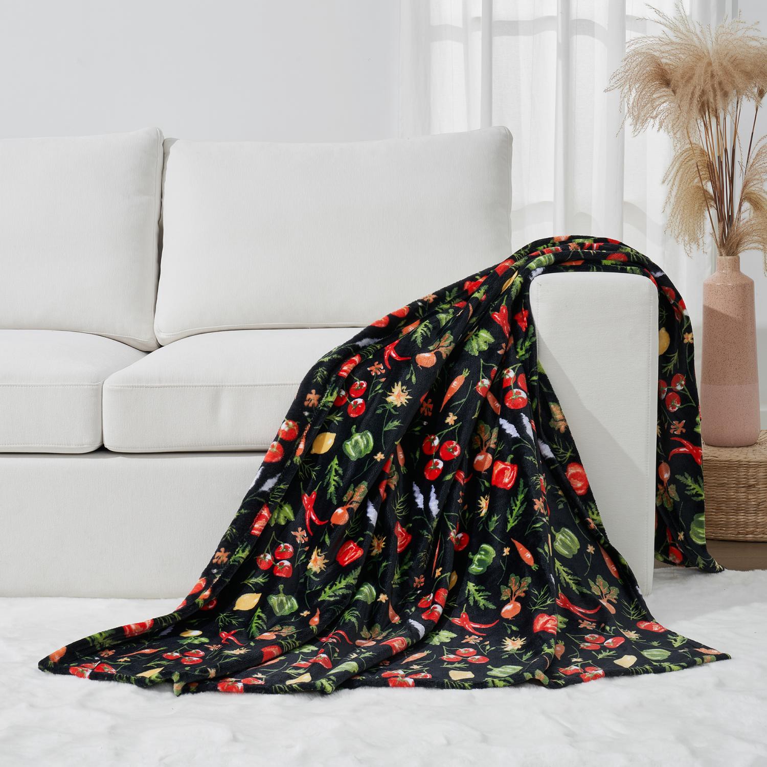 Havenstay Printed Plush Throw Veggie Toss, 50 In X 70 In