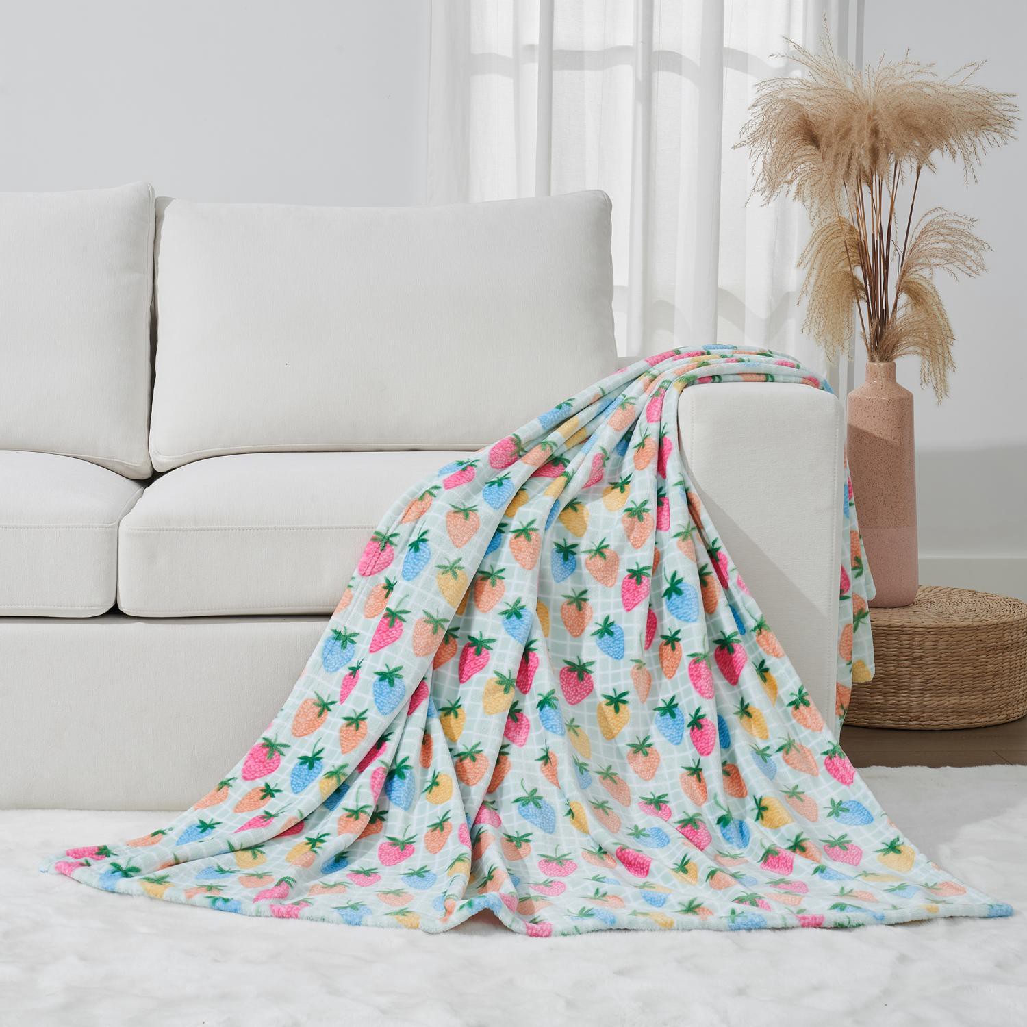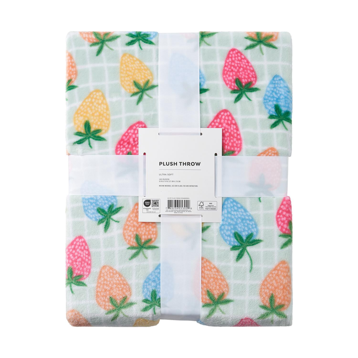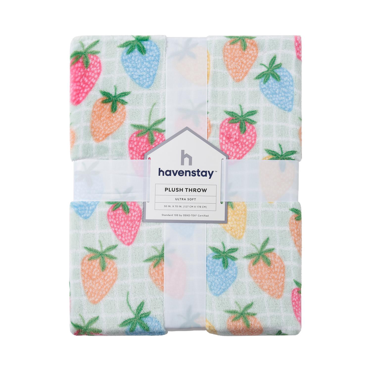 Havenstay Printed Plush Throw Strawberries, 50 In X 70 In