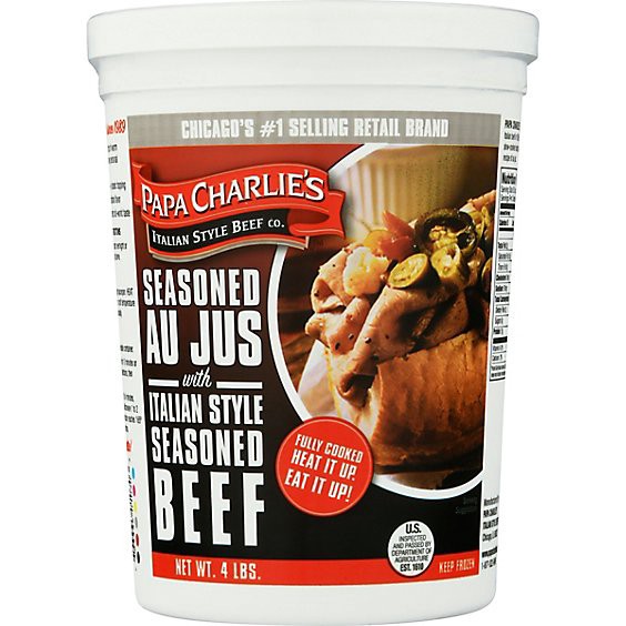 Seasoned au just with Italian style seasoned beef. Chicago's no. 1 selling retail brand. Fully cooked. Heat it up. Eat it up. Family owned since 1989. Papa Charlie's introduced Chicago famous Italian …